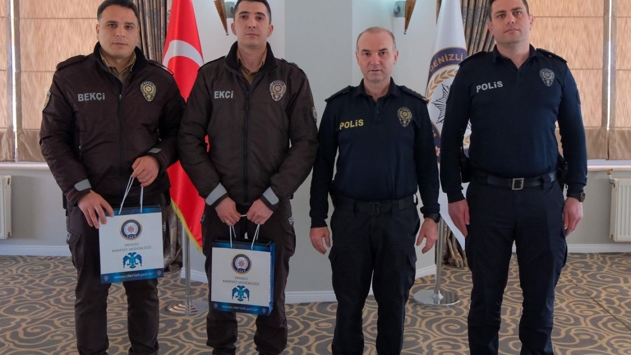 Denizli Emniyet Müdürü Yavuz Sağdıç, polisevinde düzenlenen törende bekçileri tebrik ederek, plaket takdim etti.