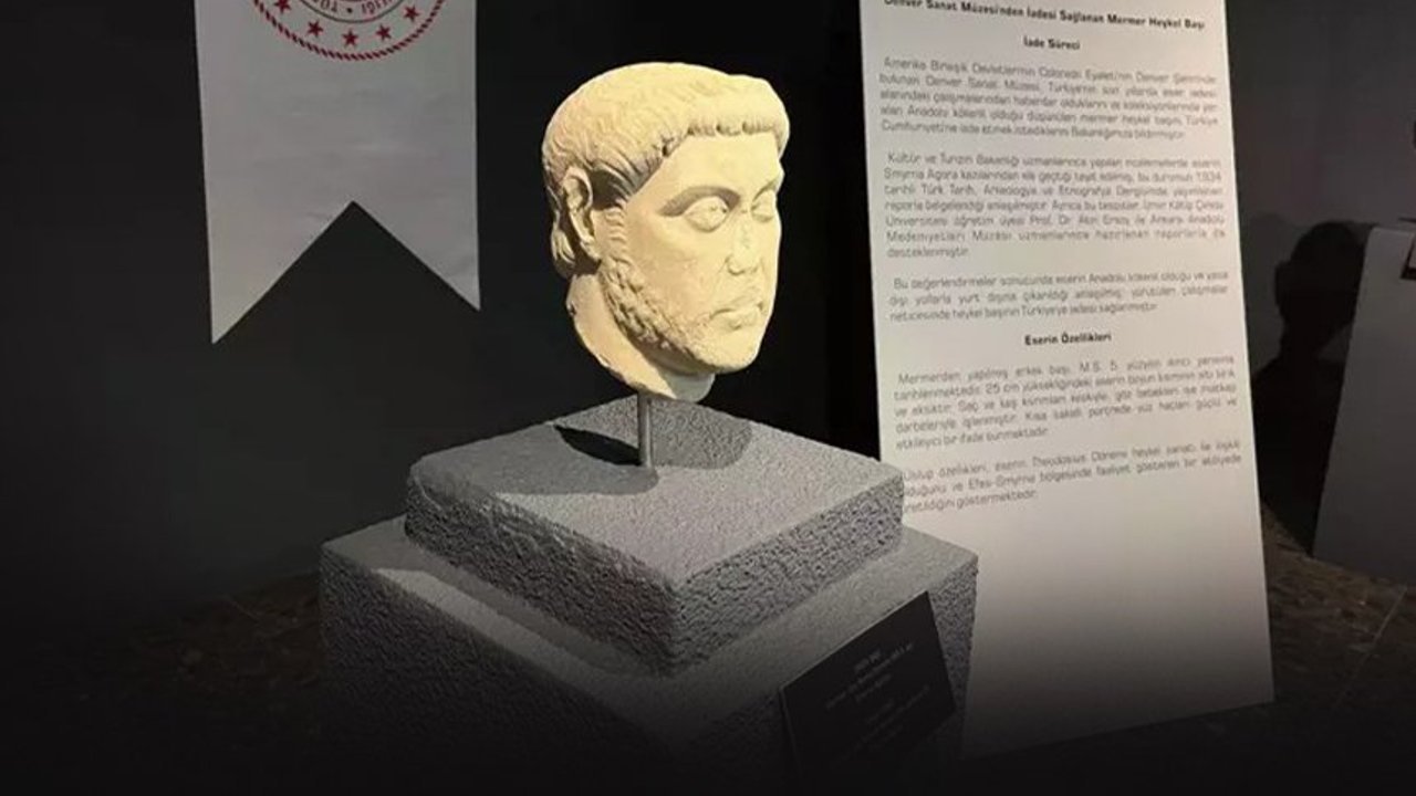 Türkiye'nin son yıllarda eser iadesi alanındaki çalışmalarından haberdar olan Amerika Birleşik Devletleri'nin Colorado eyaletinin Denver şehrinde bulunan Denver Sanat Müzesi, koleksiyonlarında yer alan ve Anadolu kökenli olduğu düşünülen mermer heykel başını Türkiye Cumhuriyeti'ne iade etmek istediklerini Kültür ve Turizm Bakanlığı'na bildirdi. Kültür ve Turizm Bakanlığı uzmanlarınca yapılan incelemelerde eserin Smyrna Agora kazılarından ele geçtiği teyit edildi. Bu durumun 1934 tarihli Türk Tarih, Arkeoloji ve Etnografya Dergisi'nde yayımlanan raporla belgelendiği belirtilirken bu tespitler, İzmir Katip Çelebi Üniversitesi Öğretim Üyesi ve Smyrna Antik Kenti Kazı Heyeti Başkanı Prof. Dr. Akın Ersoy ile Ankara Anadolu Medeniyetleri Müzesi uzmanlarınca hazırlanan raporlarla da desteklendi. Bu değerlendirmeler sonucunda eserin Anadolu kökenli olduğu ve yasa dışı yollarla yurt dışına çıkarıldığı anlaşıldı. Yürütülen çalışmalar neticesinde heykel başının Türkiye'ye iadesi sağlandı. Eserin mermerden yapılmış erkek başı, milattan sonra 5'inci yüzyılın ikinci yarısına tarihlendiği ve 25 santimetre yüksekliğindeki eserin boyun kısmının altı kırık ve eksik olduğu belirlendi. Saç ve kaş kıvrımları keskiyle, göz bebekleri ise matkap darbeleriyle işlenen eserin kısa sakallı portrede yüz hatları güçlü ve etkileyici bir ifade sunduğu tespit edildi. Eserin Theodosius Dönemi heykel sanatı ile ilişkili olduğunu ve Efes-Smyrna bölgesinde faaliyet gösteren bir atölyede üretildiği belirtildi.