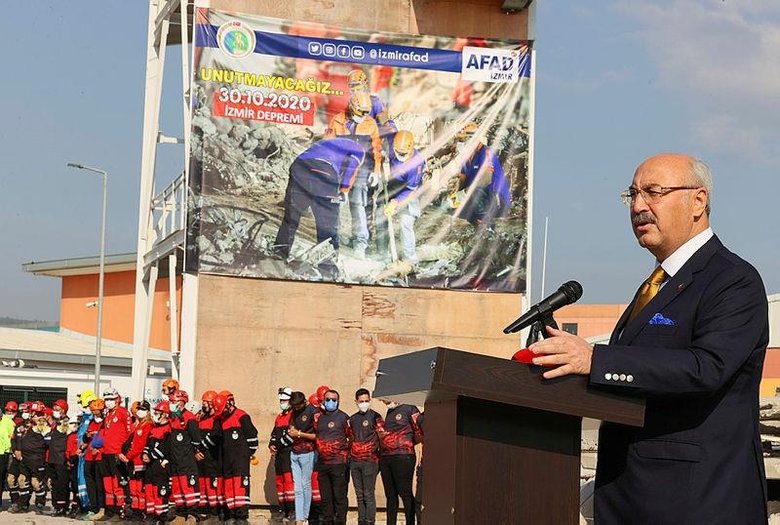 İzmir İl Afet ve Acil Durum Müdürlüğü (AFAD) bahçesinde depremin 1. yıl dönümü dolayısıyla anma programı düzenlendi.