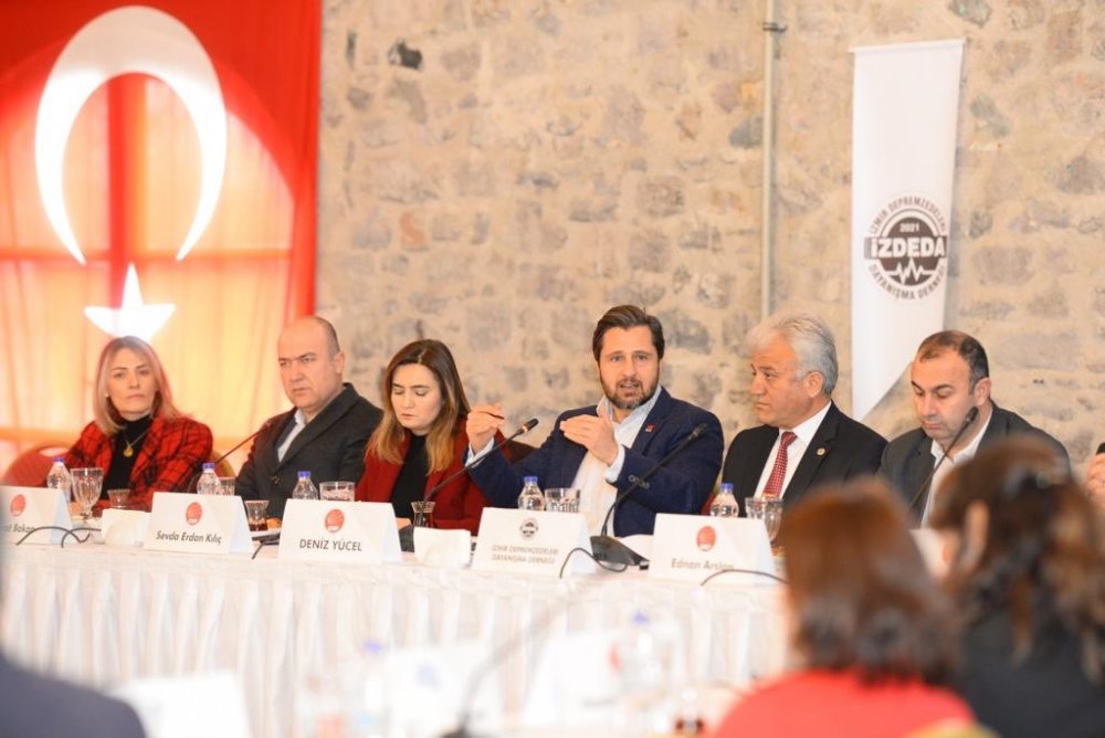 Halime ERDOĞAN / GÜNDEME BAKIŞ - İzmir Depremzedeleri Dayanışma Derneği (İZDEDA) bugün saat 10:00’da siyasi parti il başkanları ve milletvekilleriyle bir araya gelmek için Tarihi Havagazı Fabrikasında toplantı gerçekleştirdi. Dernek Başkanı Haydar Özkan’ın davetiyle gerçekleşen toplantıya CHP İzmir İl Başkanı Deniz Yücel, CHP Milletvekilleri Ednan Arslan, Kamil Okyay Sındır, Bedri Serter, Murat Bakan, Kamil Okyay Sındır, Tacettin Bayır ve Sevda Erdan Kılıç katılım sağlarken; AK Parti, İYİ Parti ve MHP’den toplantıya katılım olmadı.