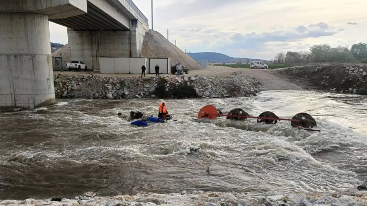 Bursa’nın Yenişehir ilçesinde Kocasu Deresi’nden traktörle karşıya geçmek isteyen 10 işçinin bulunduğu traktör, suyun ortasında devrildi. Akıntının etkisiyle dengesini kaybeden traktördeki işçiler dere içinde mahsur kaldı.