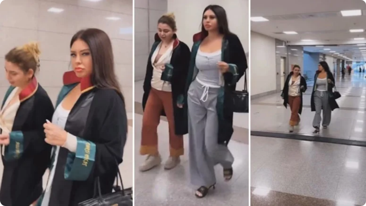 Ebru Polat’ın avukatlık cübbesinin altına eşofmana benzeyen takım ve topuklu ayakkabılarla adliye koridorlarında yürüdüğü anların yer aldığı video, sosyal medyada tartışma konusu oldu.