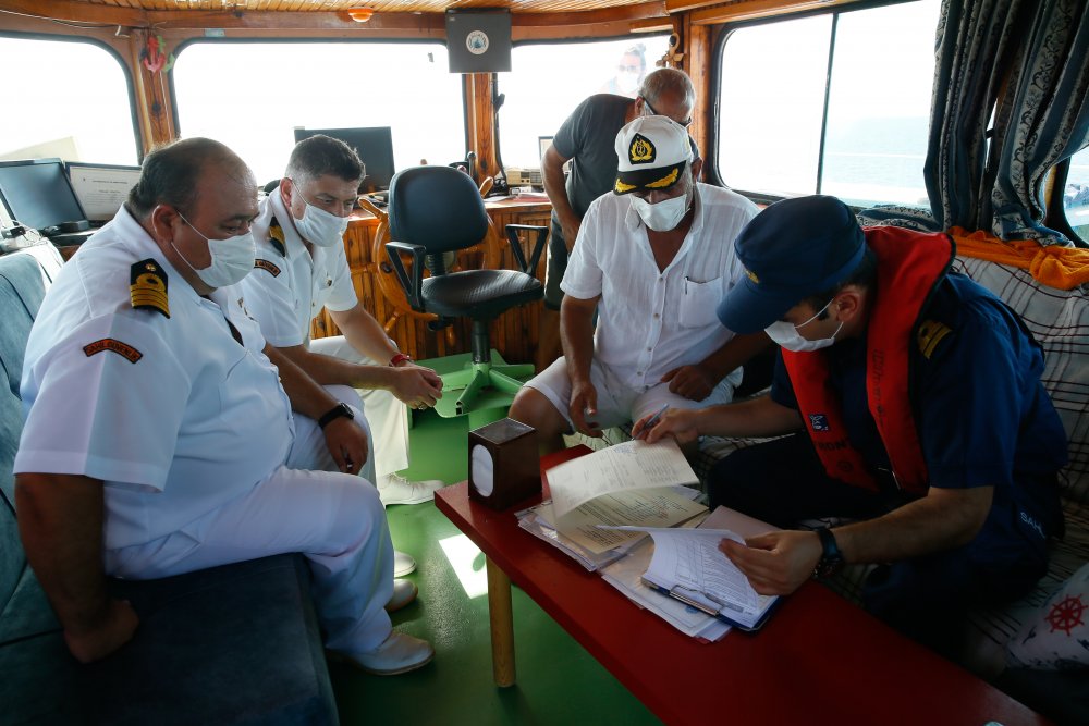 Çalışmada, Ege Denizi'ndeki 537 tekne ve gezi teknesi denetlenirken, yaklaşık 15 bin tatilciye Kovid-19 tedbirleri kapsamında alınan önlemlerle ilgili uyarılarda bulunuldu.