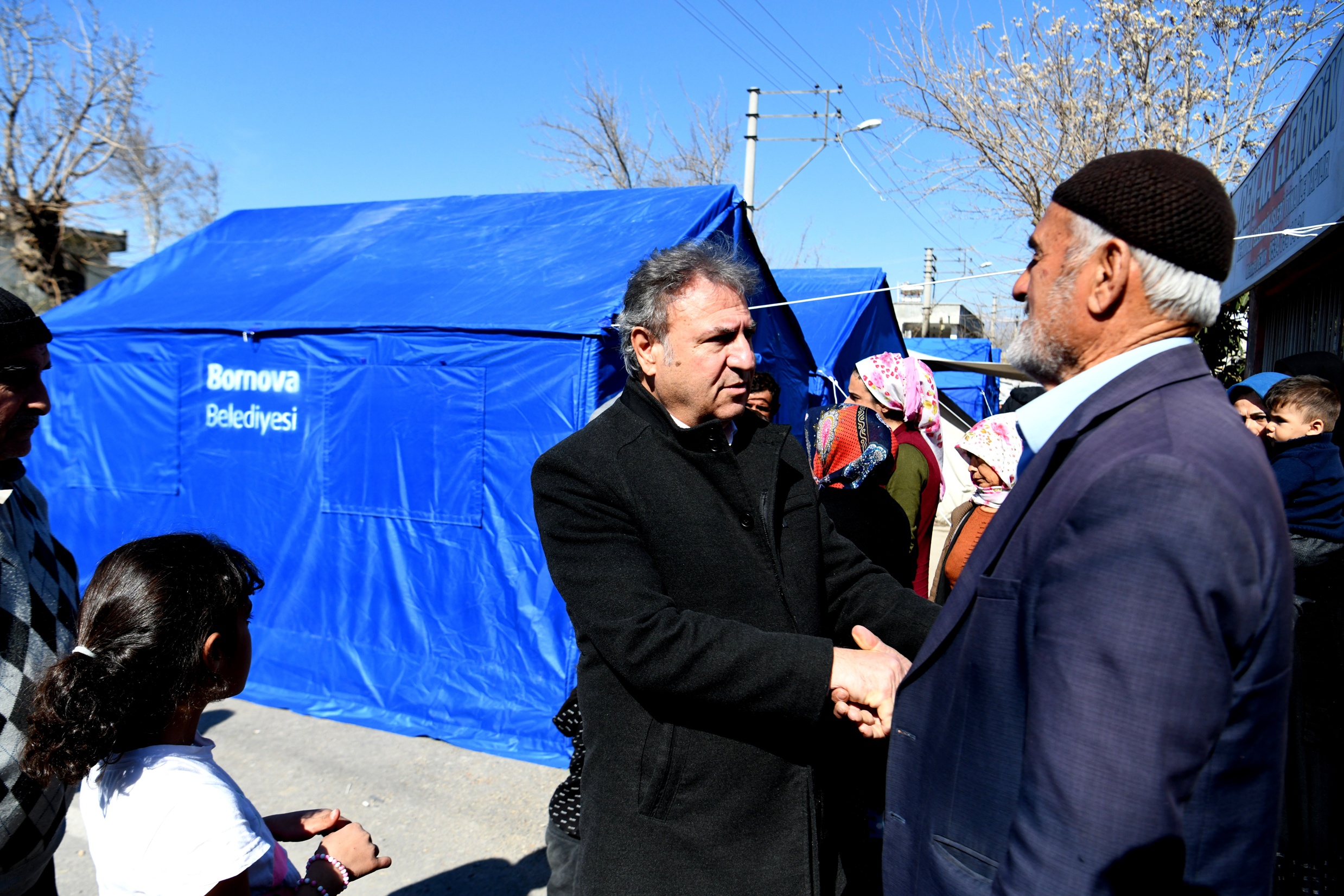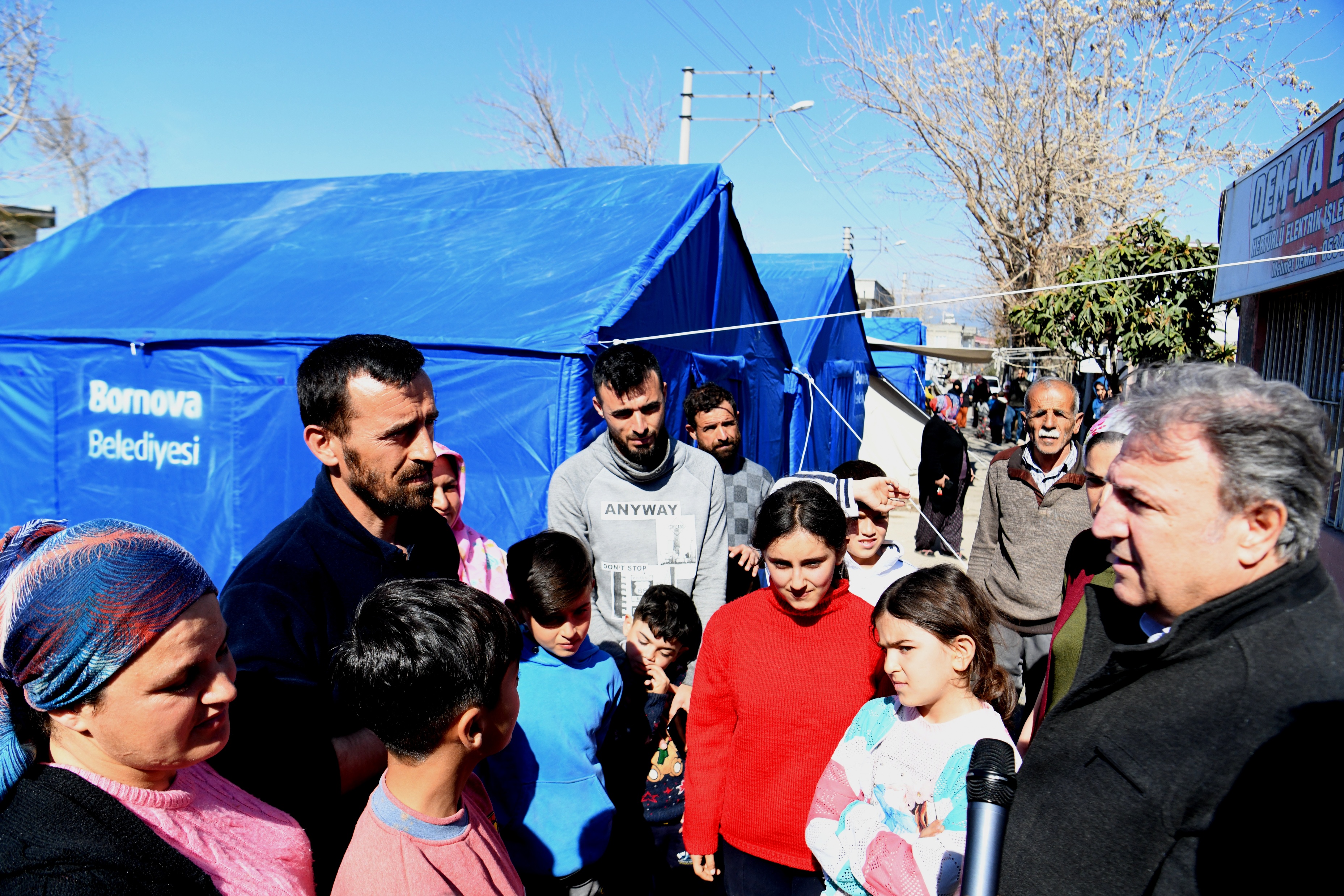 Çalışmaları bizzat yerinde takip eden Bornova Belediye Başkanı Dr. Mustafa İduğ, yaşamlarını zor şartlar altında sürdüren depremzede ailelere moral verdi. Yaşanan felaketin çok büyük olduğunu ifade eden Başkan İduğ, “10 ilde büyük yıkım oldu ve biz Bornova Belediyesi olarak tüm imkanlarımızla sizlerin yaralarını sarmak için buradayız. Yaşam şartları özellikle sizler için çok daha ağır. Bu anlamda özel özel bir çalışmayla yanınızda olmak istedik. Bundan sonra da olmaya devam edeceğiz. Yaralarımızı hep birlikte saracağız” dedi.