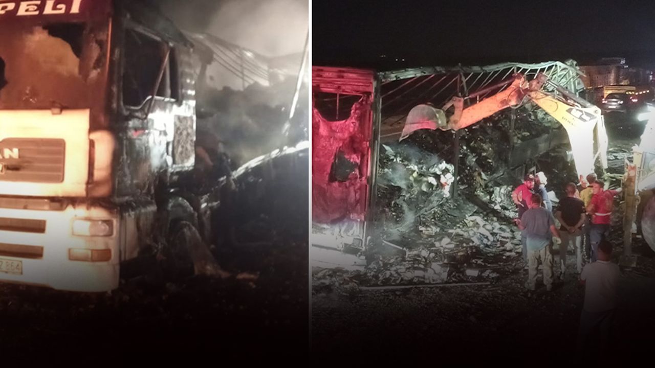 Ev eşyası yükü olan TIR'daki alev bir anda büyüdü ve patlamalara neden oldu.