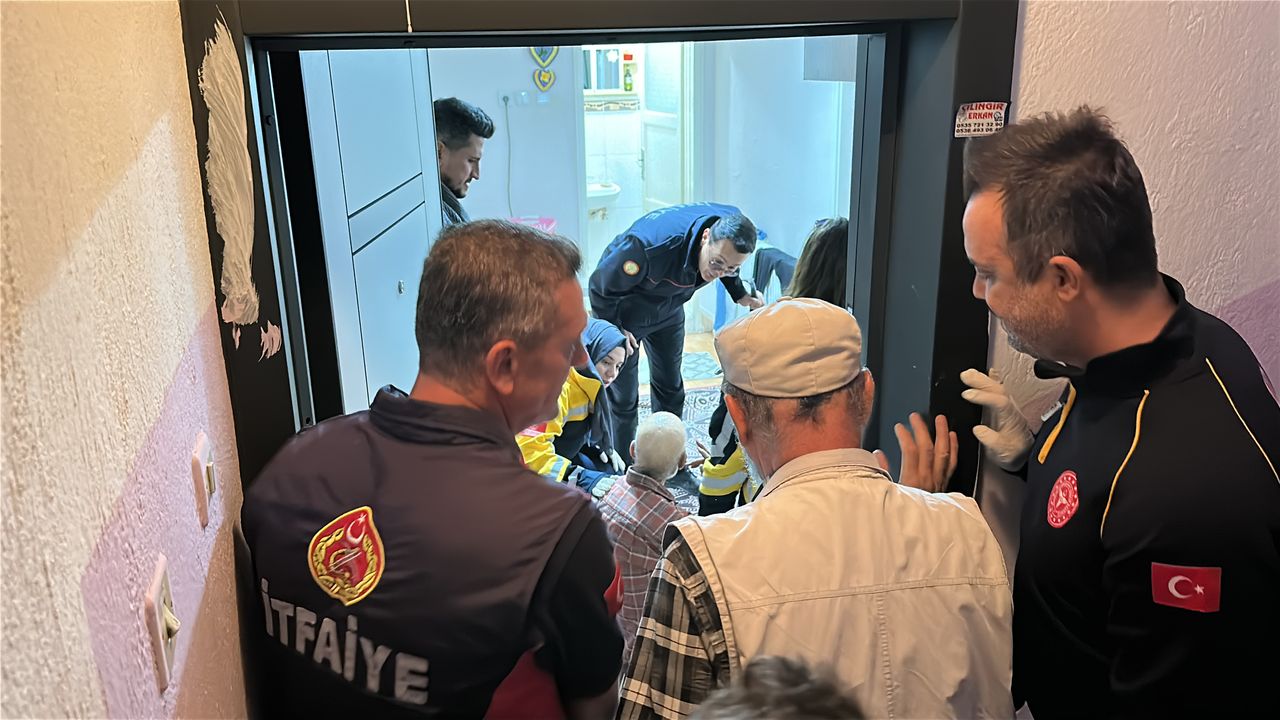 İhbarla adrese sağlık, polis ve itfaiye ekipleri sevk edildi. Polisler, itfaiye merdiveniyle çıktıkları balkon penceresinden eve girdi.