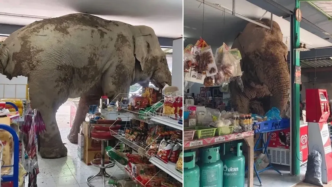 Tayland’da vahşi fil nüfusunun 3.000-3.500 civarında olduğu tahmin ediliyor. Filler, genellikle sürüler halinde tarlalara ve yerleşim alanlarındaki bahçelere yiyecek aramak için girse de, bir filin gündüz saatlerinde tek başına bir markete girmesi bölge için nadir bir olay olarak dikkat çekti.