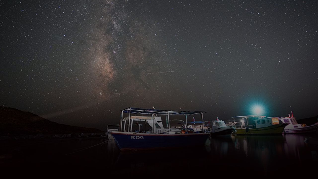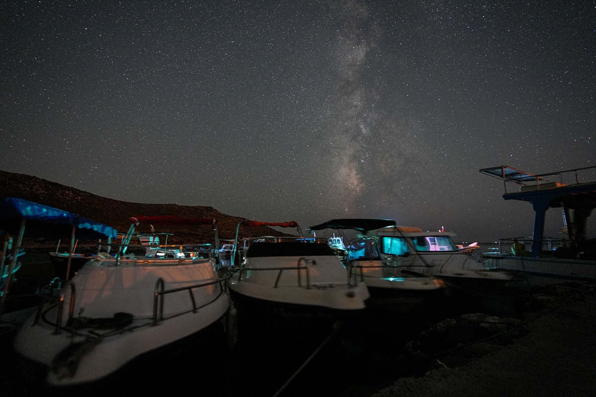 İzmir'in Urla ilçesindeki Zeytineli Plajı'nda gece saatlerinde gökyüzünde beliren yıldızlar uzun pozlama tekniğiyle fotoğraflandı. Gökyüzünde Samanyolu Galaksisi de görüldü.