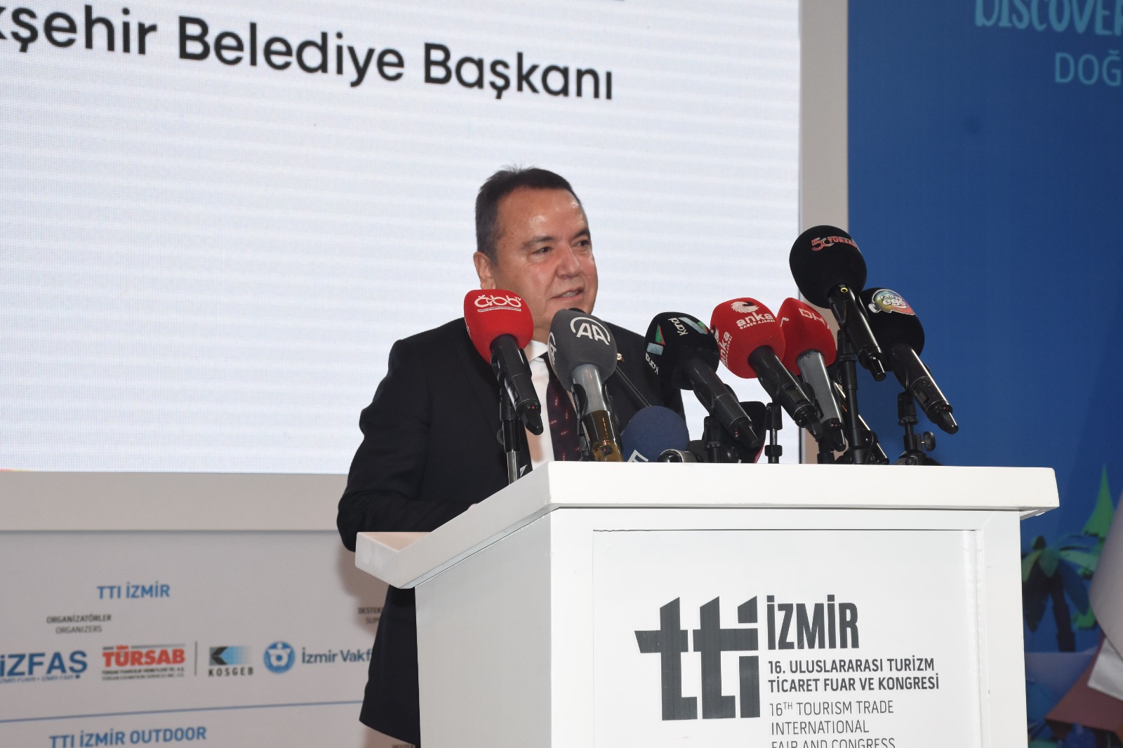 Antalya Belediye Başkanı Muhittin Böcek, "Turizm çağımızın en önemli endüstrilerinin başın da geliyor. Önemli istihdam, ve doğrudan döviz girişi nedenleriyle önceliklidir. Ülkemizde turizm denince akla Antalya gelir. Tarih bakımından da büyük zenginliğe sahiptir. 640 kilometre sahili, koyları, kumsalları, yaylaları, akarsuları, otelleriyle yerli ve yabacıların turizm merkez konumundadır. Antalya turizmin her alanında hizmet vermektedir. 2022'de 13 milyon yabancı turist ilimize gelmiştir" açıklamasında bulundu.