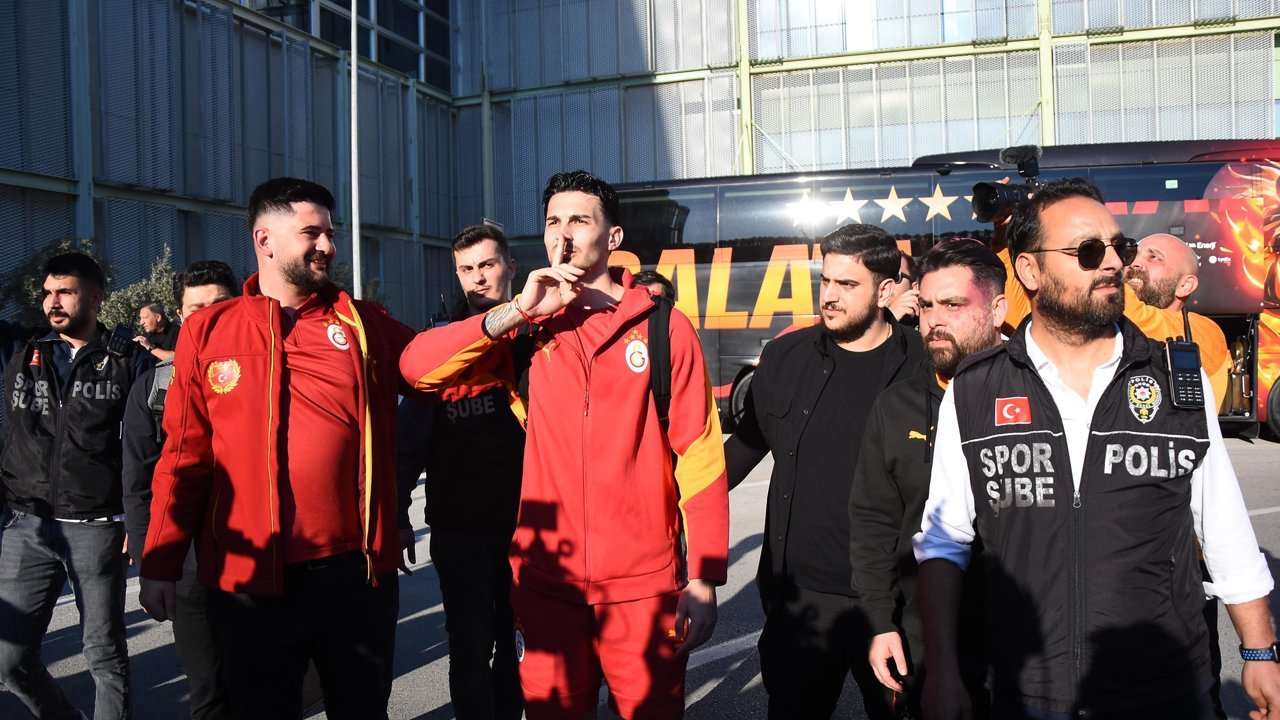Galatasaray kalecisi Uğurcan Çakır, kendisi için hazırlanan pankartla birlikte poz verip taraftarlara üçlü çektirdi. Teknik direktör Okan Buruk da kendi pankartıyla hatıra fotoğrafı çektirip taraftarları selamladı. Galatasaray'da tedavisi süren Victor Osimhen kadroda yer almazken, kırmızı kart cezalısı Abdülkerim Bardakcı kafileyle birlikte İzmir'e geldi. Galatasaray takım otobüsü emniyet güçleri eşliğinde kamp yapacağı otele hareket etti.