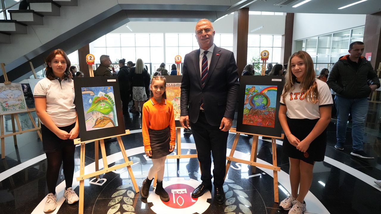 Yarışma sonuçlarının açıklanmasının ardından yarışmaya katılan öğrencilerin 56 eseri, Gaziemir Belediyesi Hizmet Binasının zemin katında düzenlenen sergide sanatseverlerle buluştu. Serginin açılışı; Gaziemir Belediye Başkanı Ünal Işık, belediye başkan yardımcıları, birim müdürleri ve yarışmaya katılan çocuklar ile ailelerinin katılımıyla gerçekleştirildi. Yarışmaya katılan çocukları tebrik eden Belediye Başkanı Ünal Işık, dereceye giren Duru Koray, Duru Arslan, Cemre Karaoğlu’na ödüllerini verdi. Daha sonra sergideki resimleri tek tek inceleyen Başkan Işık, çocuklardan çizimlerini yaparken neler düşündükleri konusunda bilgi aldı.