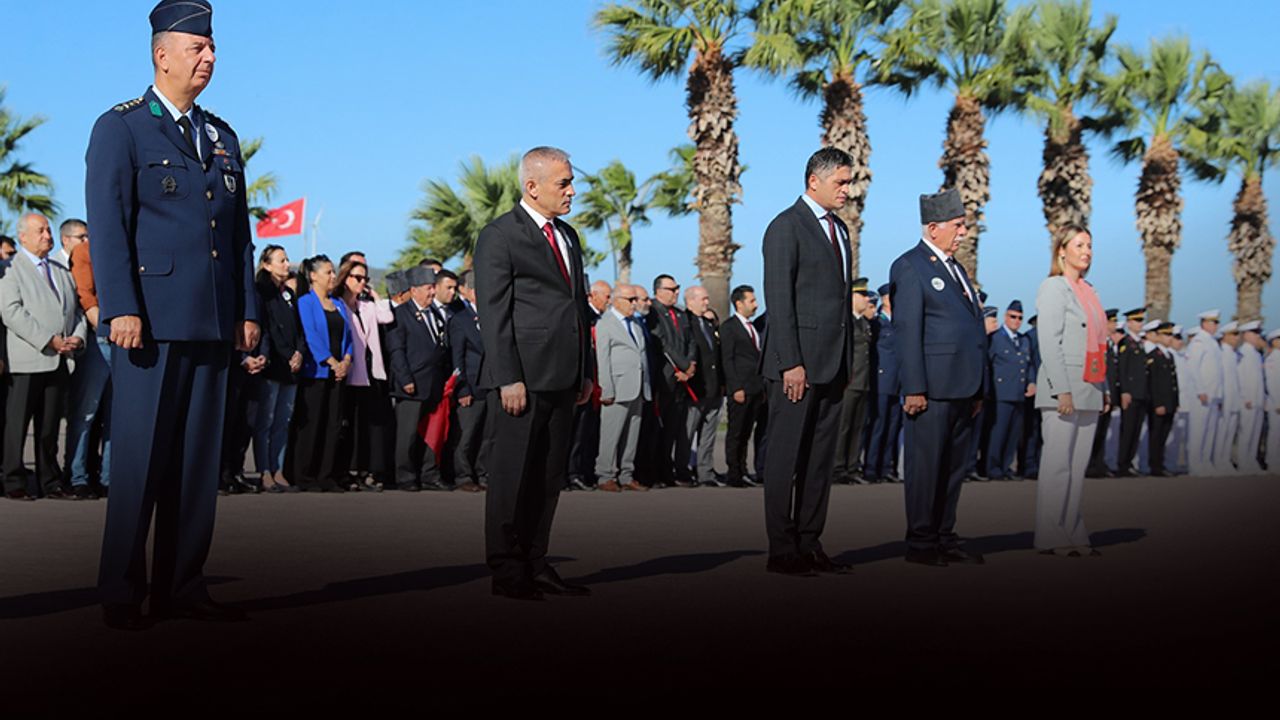 Aliağa Kaymakamlığı tarafından Cumhuriyet Meydanı’nda gerçekleştirilen törene: Aliağa Kaymakamı Zekeriya Güney, Aliağa Belediye Başkanı Serkan Acar, Garnizon Komutanı Albay Ali Güler, gaziler ve yakınları, şehit aileleri, kurum müdürleri, Aliağa Belediyesi başkan yardımcıları, belediye meclis üyeleri, muhtarlar, siyasi parti yöneticileri, sivil toplum kuruluşlarının temsilcileri, oda başkanları, öğretmenler, öğrenciler ve vatandaşlar katıldı.