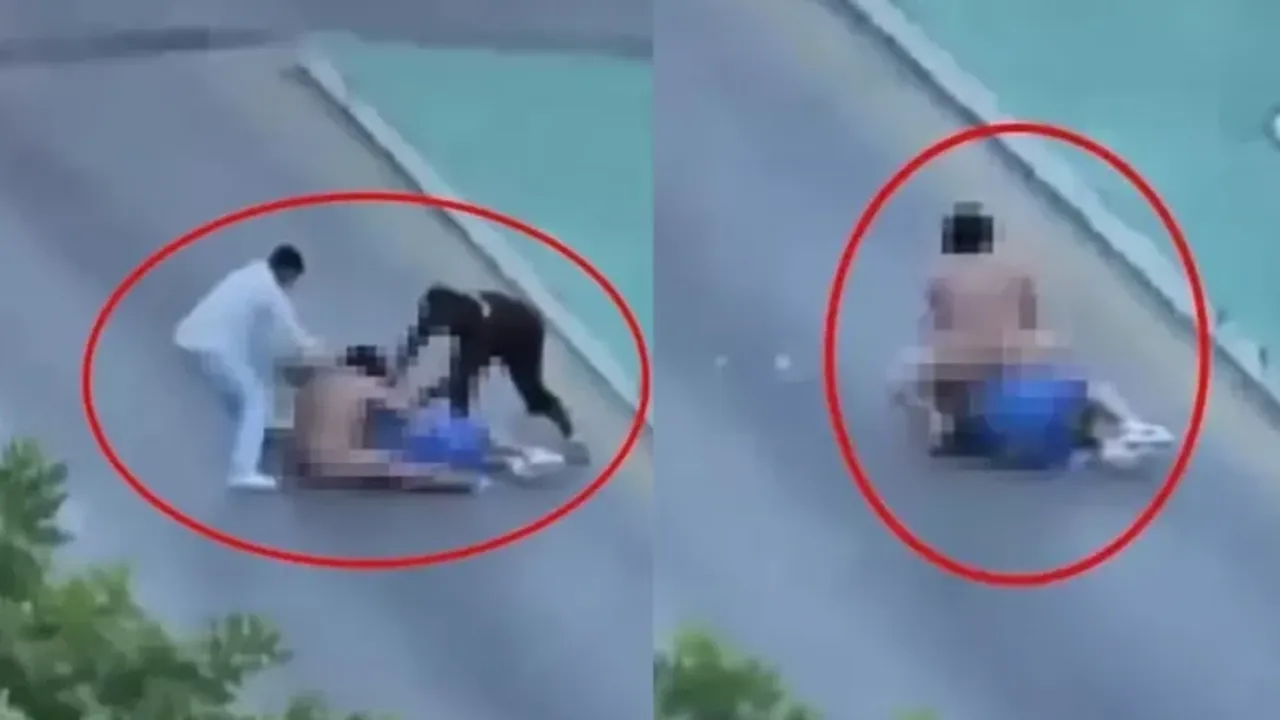 Görüntülerde, çıplak kadının saldırdığı kişinin üzerine oturduğu ve çevredekilerin araya girerek müdahalede bulunduğu anlar yer aldı.