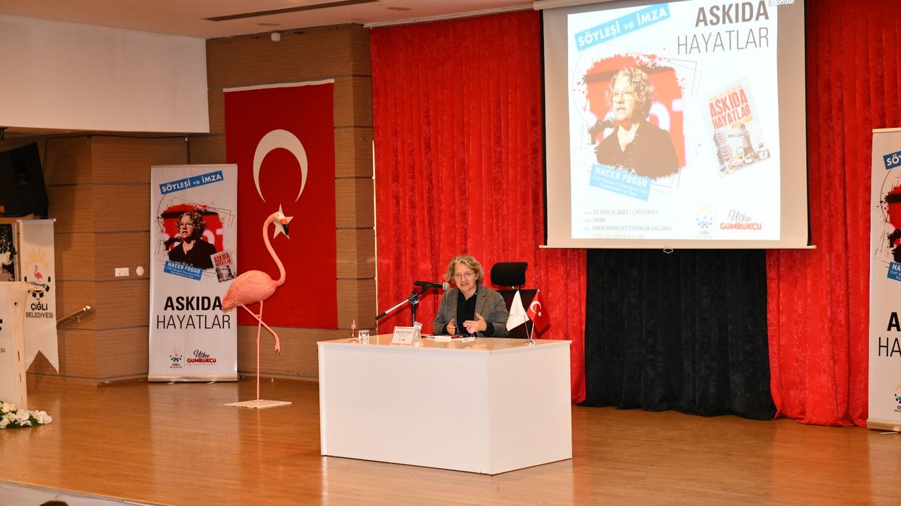 Çiğli Belediyesi Fakir Baykurt Salonu’nda gerçekleştirilen “Askıda Hayatlar” konulu söyleşi ve imza gününde CHP Yoksulluk Dayanışma Ofisi Koordinatörü ve Yazar Hacer Foggo Çiğlili vatandaşlar ile bir araya geldi. Etkinliğe meclis üyeleri, muhtarlar, sivil toplum kuruluşu temsilcileri, dernekler ve siyasi parti temsilcileri yoğun ilgi gösterdi. Söyleşide konuşan Çiğli Belediye Başkanı Utku Gümrükçü, “Çiğli’de yoksulluğu çözmeye ve vatandaşlarımızı daha ileriye taşımaya talibiz” dedi.