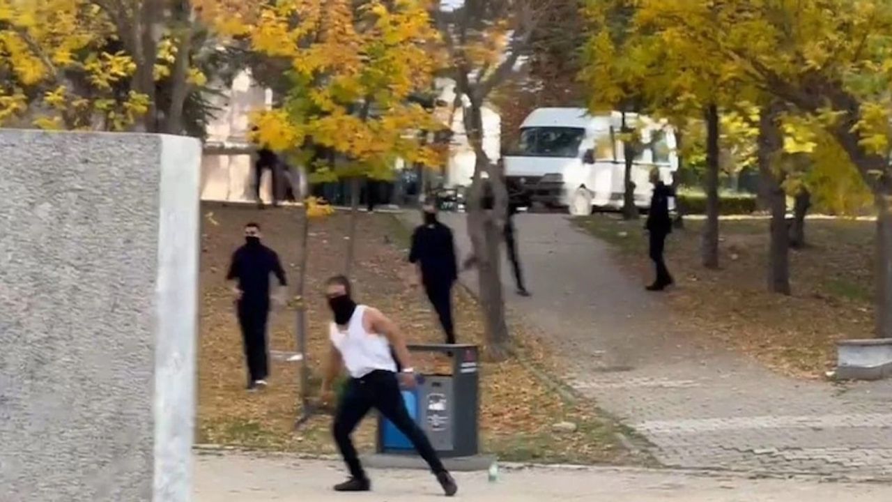 Sosyal medyaya yansıyan görüntülerde yüzü kapalı bir öğrencinin elinde pala olduğu görüldü.