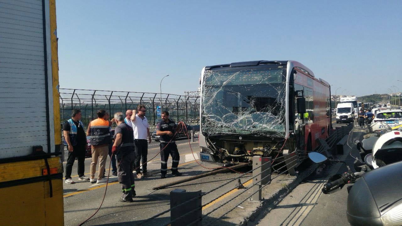 İstanbul Haliç Köprüsü üzerinde bir metrobüs kaza yaptı.