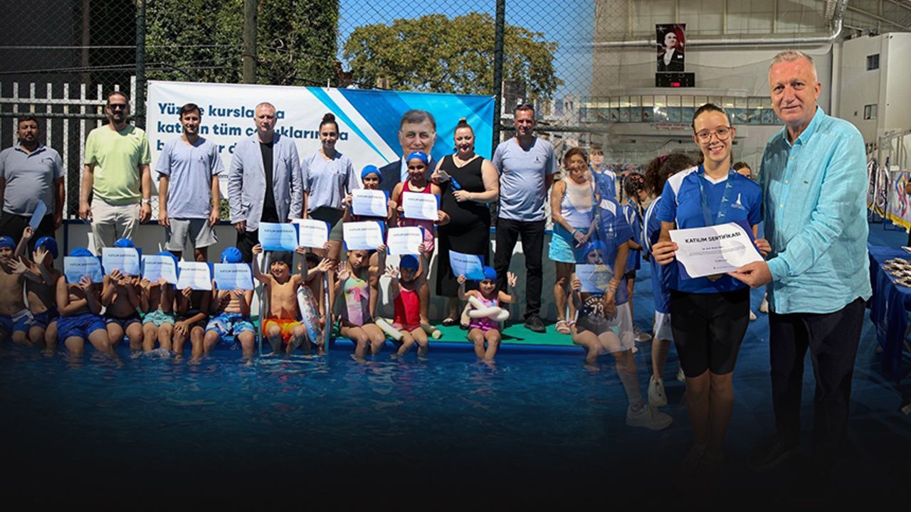 Minik yüzücüler ve yaz spor okullarına katılan çocuklar düzenlenen törenle sertifika ve madalyalarını aldı. Törene katılan İzmir Büyükşehir Belediyesi Gençlik ve Spor Hizmetleri Dairesi Başkanlığı Spor Çalışmaları Şube Müdürü Gürcan Temizel, “Portatif havuz sayımızı gelecek yaz artırarak çok daha fazla çocuğumuza yüzme öğreteceğiz. İzmir Büyükşehir Belediyesi olarak sporu her yaş grubuna ve toplumun tüm kesimlerine ulaştırmayı hedefliyoruz” dedi.