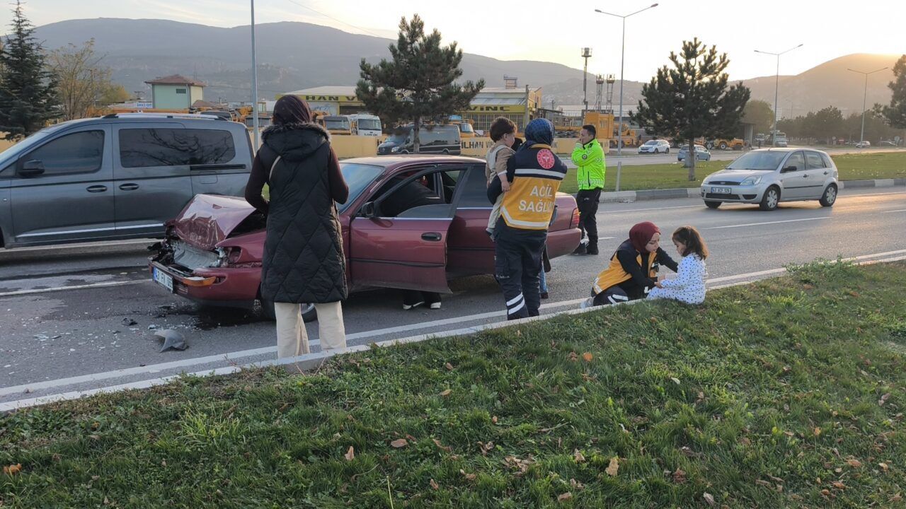 Kazada, arkadan çarpan otomobilin sürücüsü ile araçtaki H.B. (41) ile 1 yaşındaki oğlu K.A.B. yaralandı.