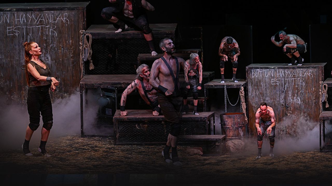 Bu yıl 94’üncüsü düzenlenen İzmir Enternasyonal Fuarı’nda ücretsiz Açık Hava Tiyatrosu etkinlikleri Oyun Atölyesi’nin “Hayvan Çiftliği” oyunu ile başladı. Uyarlamasını Zerrin Akdenizli’nin yaptığı, yönetmenliğini Barış Erdenk’in üstlendiği oyunda; Muharrem Özcan, Umut Temizaş, Aylin Kontente, Eser Karabil, Şirin Kılavuz, Ezgi Coşkun, Ayhan Bekdemir, Beran Kotan, Ulaş Akşit, Ramazan Ülkü Turan Bölükbaşı ve Ali Tepe sahne aldı. Gürkan Çakıcı’nın müzikleri, Kemal Yiğitcan’ın ışık tasarımı ve Asya Başkan’ın kostümleriyle zenginleşen yapım, izleyiciyi yalnızca oyuncuların sahne üstündeki performansıyla değil atmosferiyle de etkiledi. Orwell’in politik hicvi olan “Hayvan Çiftliği”, hayvanların eşitlik ve özgürlük talepleriyle başlattıkları isyanın, kısa sürede totaliter bir rejime dönüşmesini anlatıyor.
