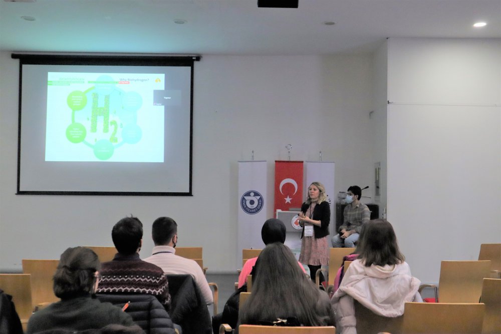 Dr. Güngörmüşler, sözlerini şöyle sürdürdü: “Hidrojen, ulaşımdan elektrik üretimine kadar geniş bir uygulama alanına sahip. Biyohidrojen dediğimiz de, hidrojenin doğal kaynaklardan üretilmiş hali. Kısa bir süre önce İzmir’de bulunan 5 kaplıcadaki bakterileri inceleyerek bunların biyohidrojen üretme potansiyelini belirlemiştik. TÜBİTAK desteğiyle bu alanda yürüttüğümüz projelere, yine aynı destekle çalıştayı da ekledik. Lise, lisans ve lisansüstü öğrencilerinin yer aldığı gruplar, gayet başarılı fikirler geliştirdi. ‘Elektroliz yöntemi ile sudan hidrojen üretimi’, ‘Güneşten elde edilen enerji ile gerçekleştirilen biyofotoliz yöntemi ile sudan hidrojen üretimi’, ‘Organik ve inorganik kaynaklardan biyoteknolojik yollarla hidrojen üretimi’ gibi birçok konu üzerinde değerlendirme yaptılar. Tüm katılımcılarımızı tebrik ediyorum.”