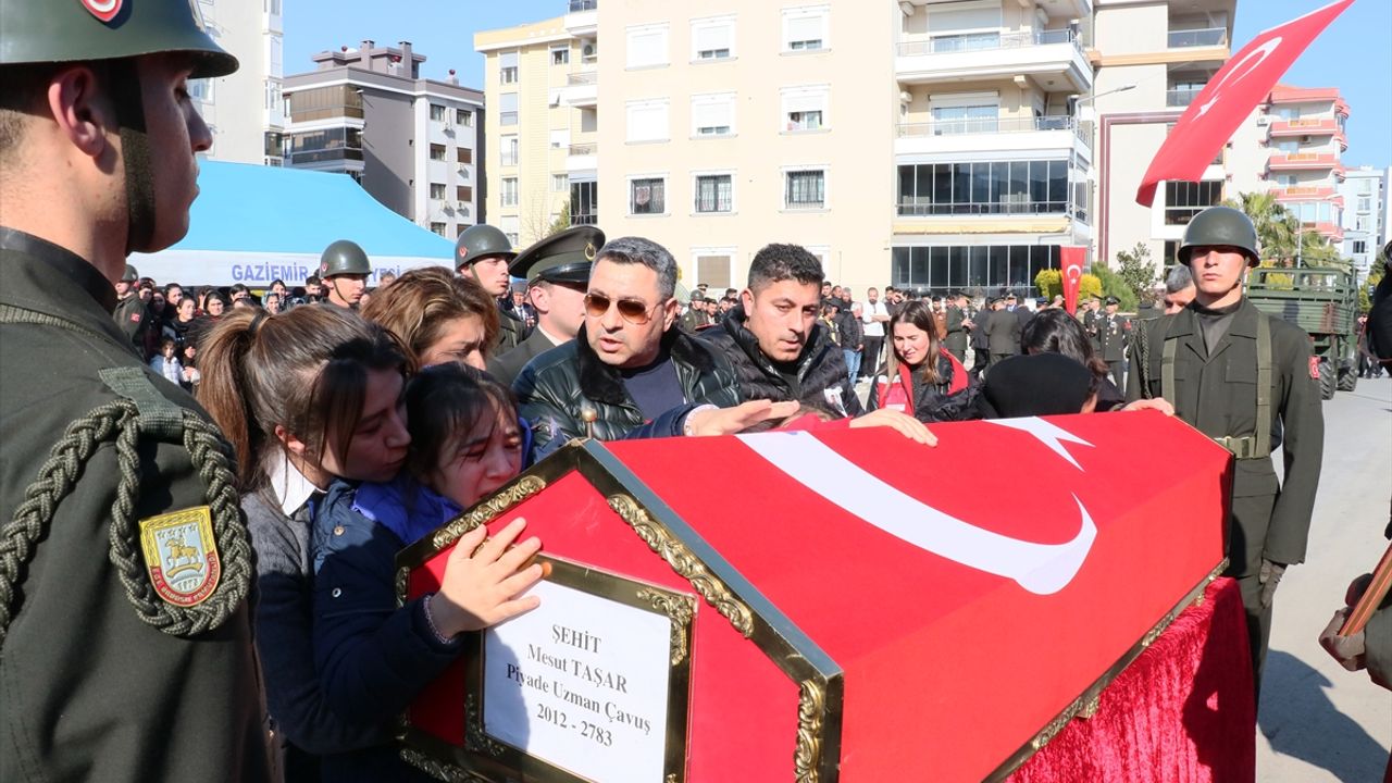 Taşburun mevkisinde 5. Hudut Alay Komutanlığına ait zırhlı aracın devrilmesi sonucu yaralanan ve kaldırıldığı hastanede 55 gün sonra şehit olan Uzman Çavuş Mesut Taşar'ın (33) Türk bayrağına sarılı naaşı Gaziemir ilçesindeki 15 Temmuz Camisi'ne getirildi.