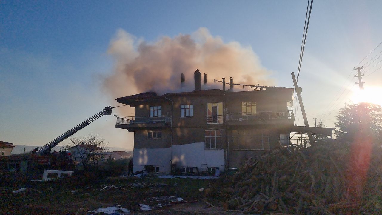 Rüzgarın etkisiyle kısa sürede tüm çatıyı saran alevler, 4 itfaiye ekibince güçlükle kontrol altına alınarak söndürüldü.