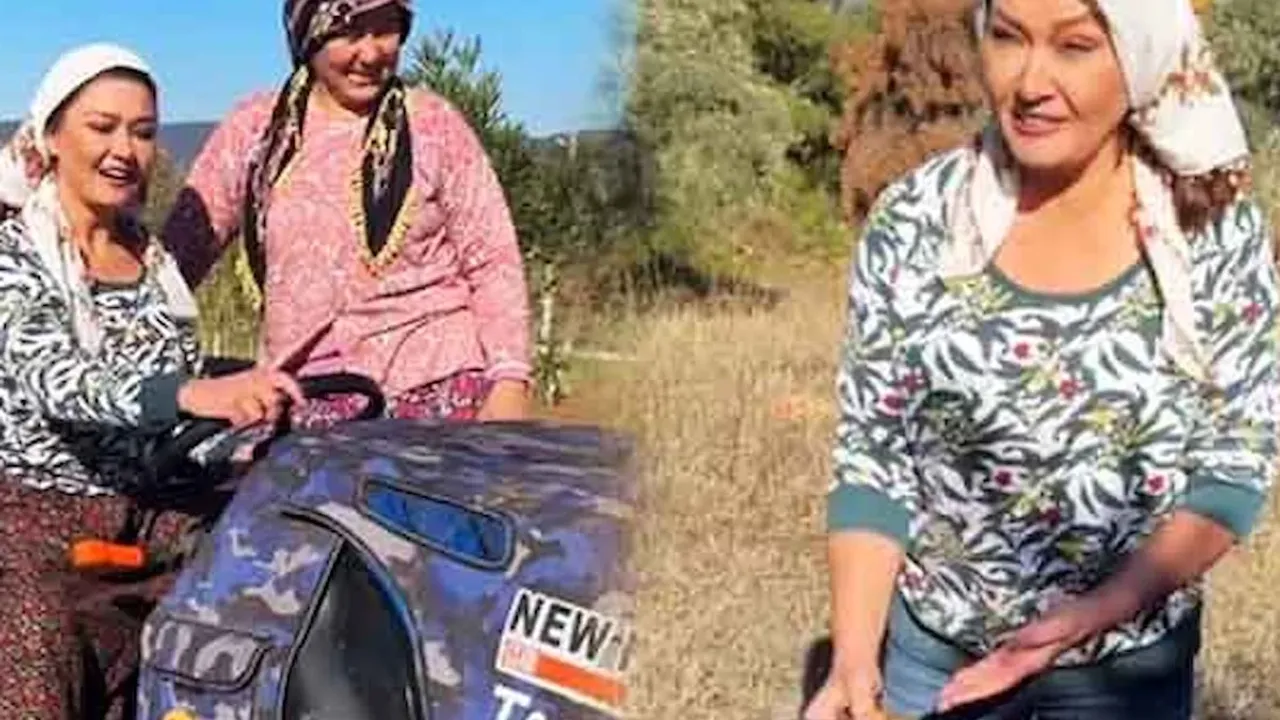 Oyuncu, ttraktör sürdüğü, elektrikli testereyle çalıştığı ve zeytin hasadına katıldığı anları "Çalışıyoz gariii" notuyla yayımladı.