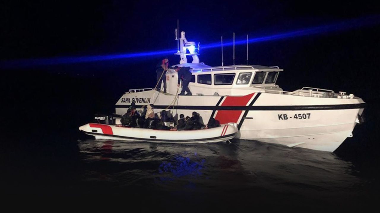Bölgeye sevk edilen ekipler, lastik bottaki 14 düzensiz göçmeni yakaladı.