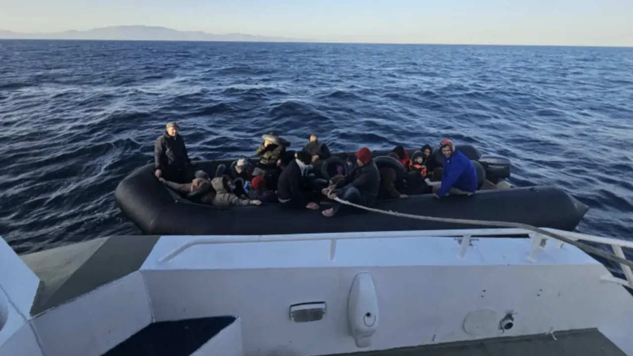 İhbar üzerine harekete eden Sahil Güvenlik ekipleri, lastik botla sürüklenen 26 kaçak göçmeni kurtardı.