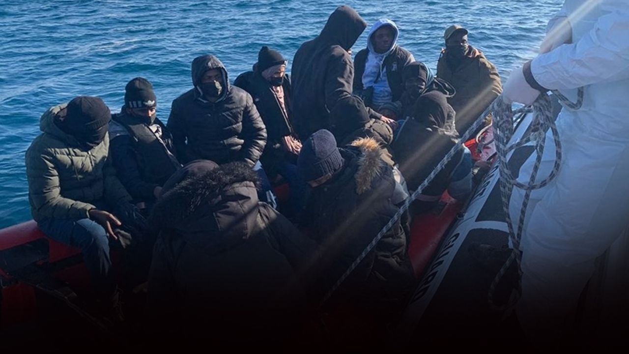 Ekipler, lastik bottaki 38 düzensiz göçmeni kurtardı.