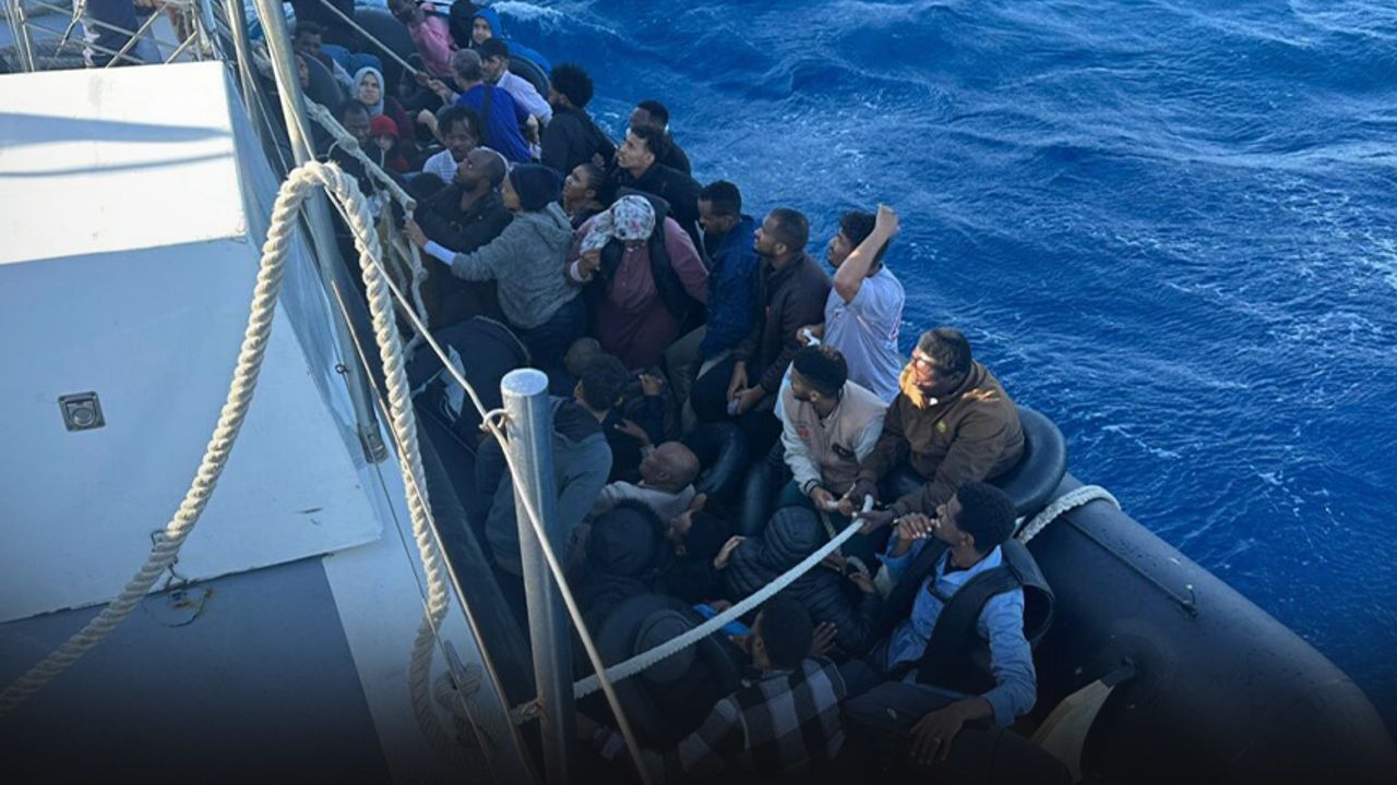 Ekipler, lastik bot içerisindeki 7'si çocuk 38 düzensiz göçmeni kurtardı.