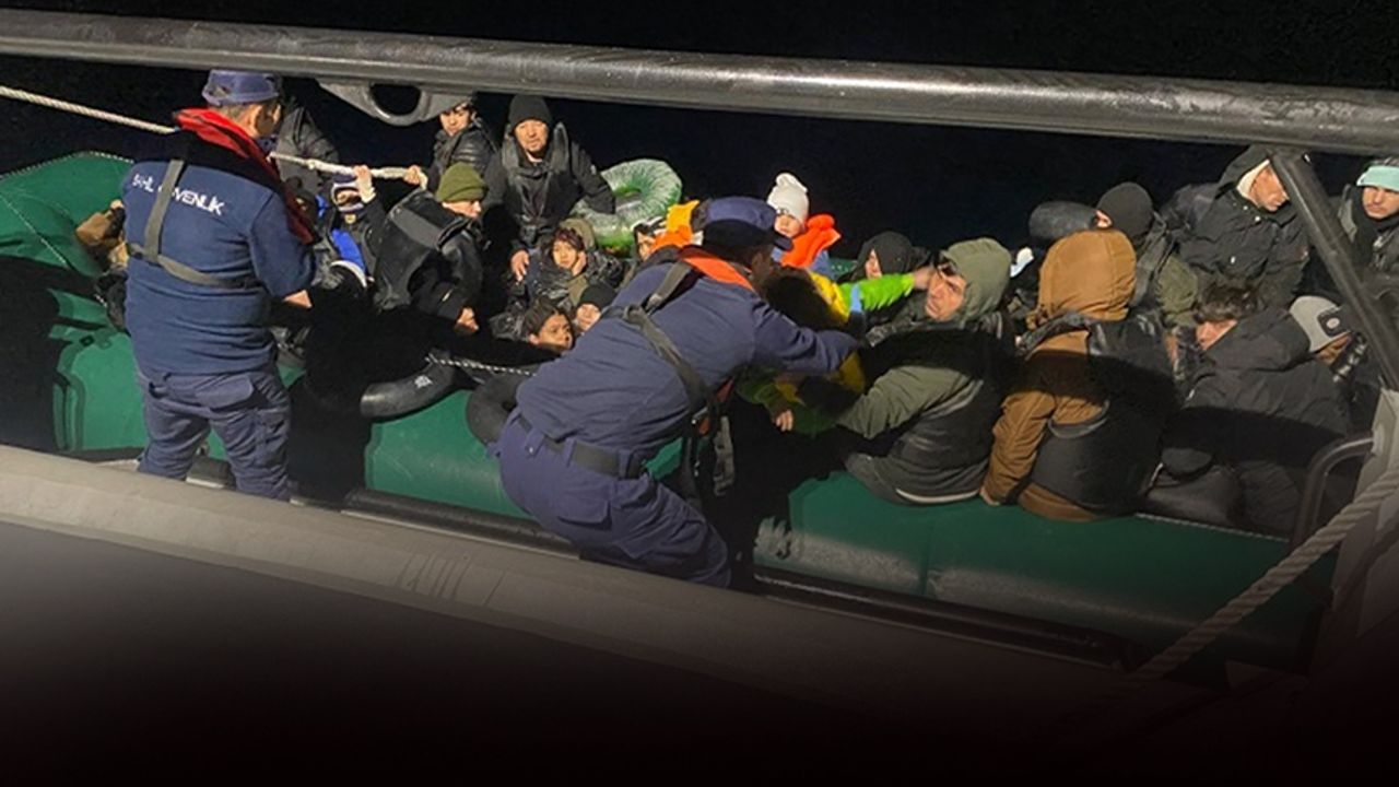 Ekiplerce durdurulan lastik bottaki 28'i çocuk, 50 düzensiz göçmen yakalanarak karaya çıkarıldı.