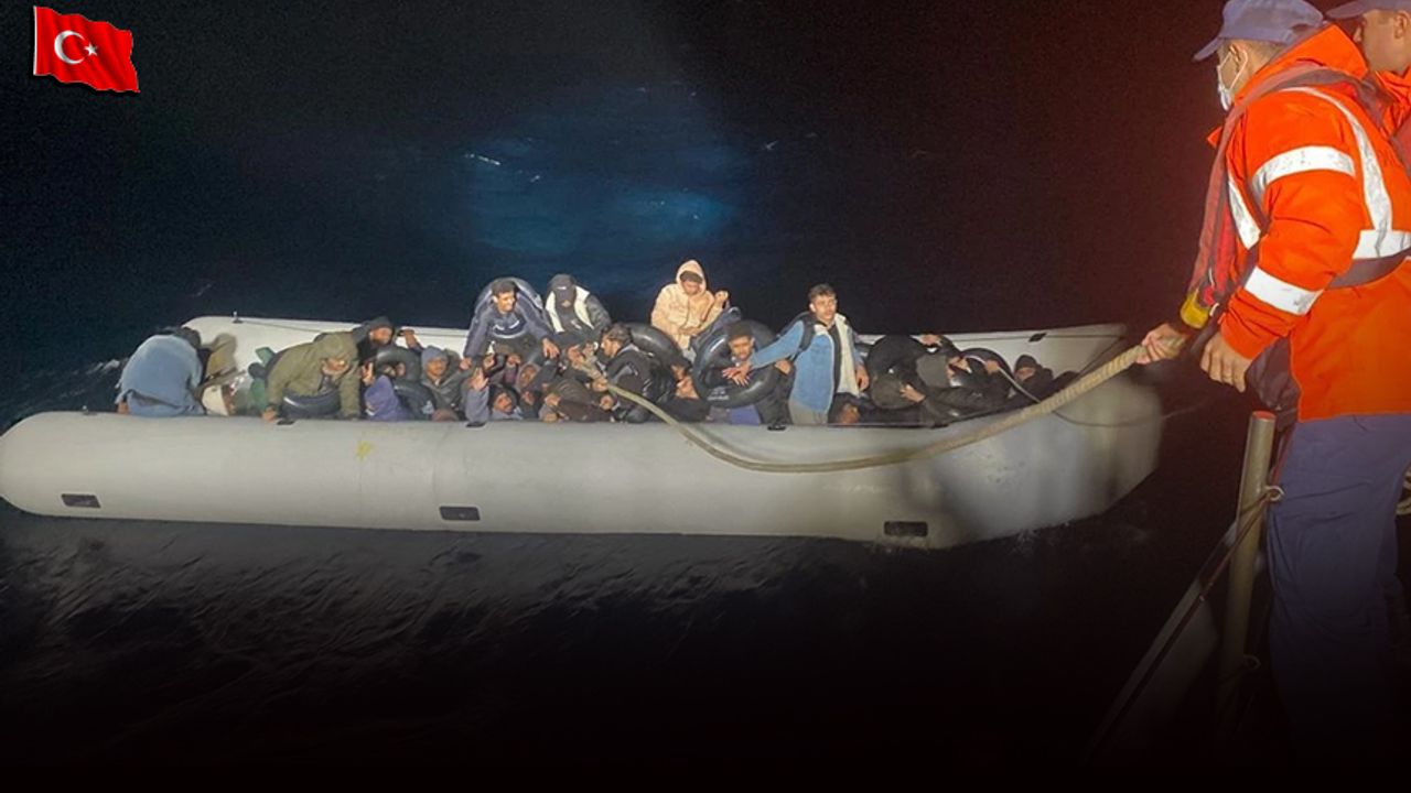 Sahil Güvenlik ekiplerince durdurulan hareketli lastik bottaki 41 düzensiz göçmen yakalandı.