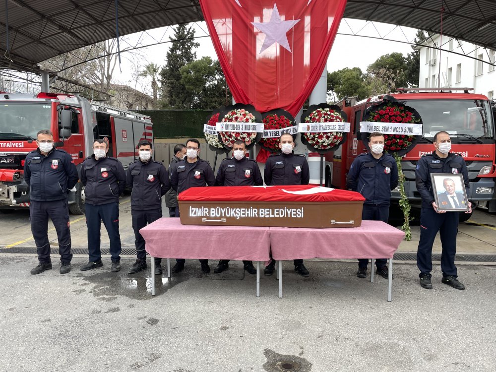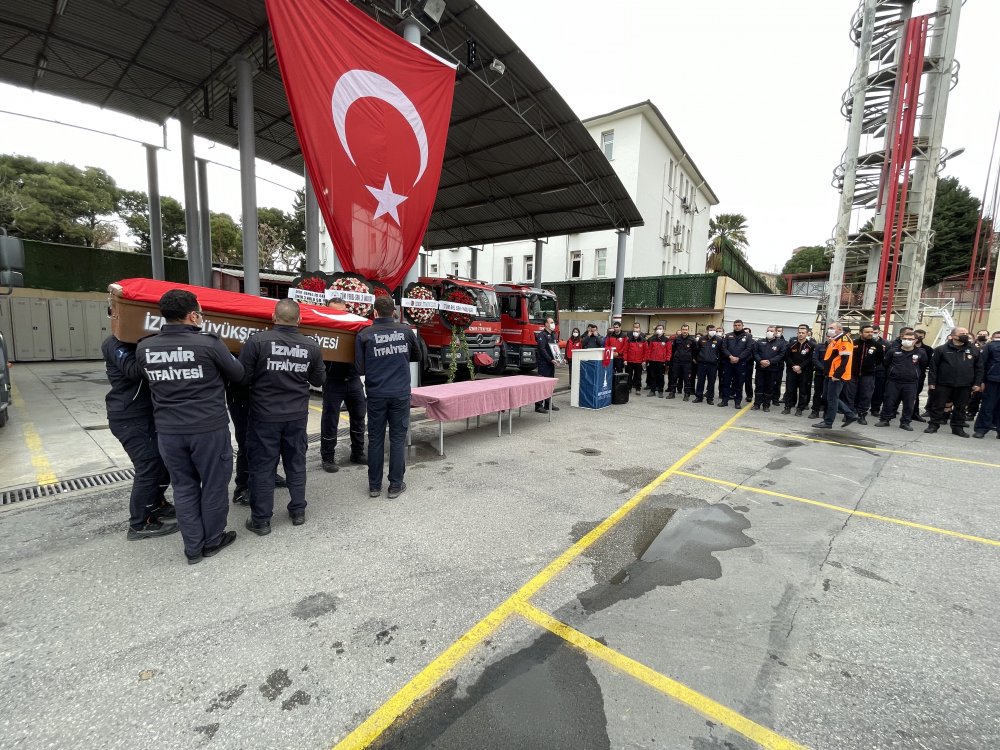 Hatipoğlu'nun Türk bayrağına sarılı cenazesi, siren çalan itfaiye araçlarının eşliğinde, mesai arkadaşlarının omzunda tören alanına getirildi.