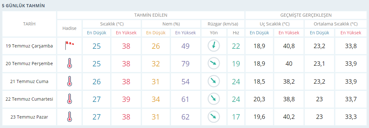 İşte İzmir için beş günlük hava durumu tahmini raporu;