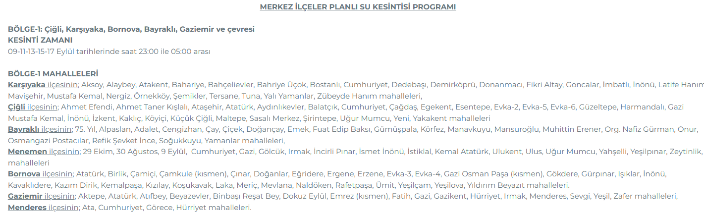 İZSU’dan yapılan açıklamada, güncel su tüketim verilerinin göz önünde bulundurulduğu ve kesinti programının yeniden düzenlendiği belirtildi.