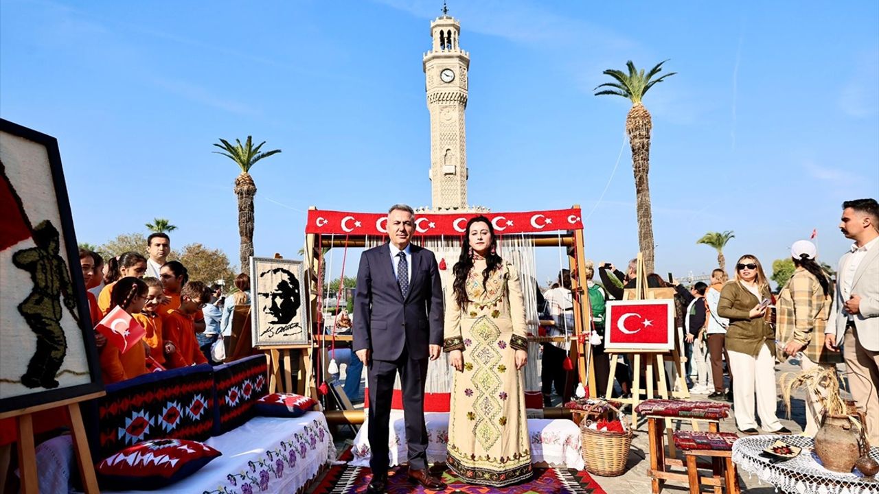 İl Milli Eğitim Müdürlüğünden yapılan açıklamaya göre, İzmir Valiliği himayesinde İl Milli Eğitim Müdürlüğü koordinasyonundaki Türk Bayrağı Dokuma-İlk İlmek Atılması Töreni, Konak Atatürk Meydanı'nda düzenlendi.