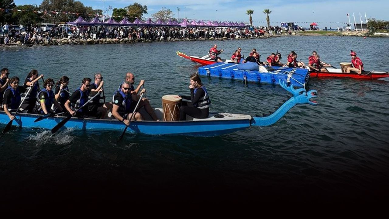 İzmir Büyükşehir Belediyesi tarafından bu yıl üçüncüsü düzenlenen Dragon Tekne Yarışması, renkli görüntülere sahne oldu. Belediye çatısı altındaki birimlerin İzmir Körfezi’nde kürek çektiği yarış, izleyenlere de heyecanlı anlar yaşattı. 28 takımın katıldığı yarış, kıyasıya rekabetin yanı sıra centilmenlik ruhunun da en güzel örneklerine sahne oldu. Balçova İnciraltı sahilinde yerini alan takımlar 250 metrelik parkurda, kazanmak için kürek çekti.