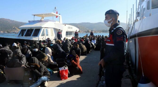İzmir İl Jandarma Komutanlığı İstihbarat Şube Müdürlüğü, Milli İstihbarat Teşkilatı (MİT) ve Sahil Güvenlik Ege Deniz Bölge Komutanlığı ekipleri, Foça ilçesindeki koydan çok sayıda kaçak göçmenin İtalya'ya kaçırılacağı bilgisi üzerine harekete geçti. Foça açıklarında göçmenlerin bulunduğu 'Ater Ego' isimli tekne, İHA ile tespit edildi. Foça Fransız Tatil Köyü'nün bulunduğu koydan saat 03.00 sıralarında denize açıldığı belirlenen teknenin bulunduğu bölgeye Sahil Güvenlik Komutanlığı ekipleri sevk edildi. Teknede 31'i kadın ve çocuk olmak üzere toplam 197 kaçak göçmen ve onları İtalya'ya götürmeyi planlayan 4 organizatör yakalandı. Kaçak göçmenler ile 4 organizatör, sabah saatlerinde Foça Balıkçı Barınağı'na getirildi. Jandarma, organizatörlerden 6'sının karada olduğunu ve teknenin hareketini buradan takip ettiklerini tespit etti. Yapılan İHA'lı takip sonucu kaçmaya çalışan 6 şüpheli, jandarma ekiplerince yakalanarak gözaltına alındı.