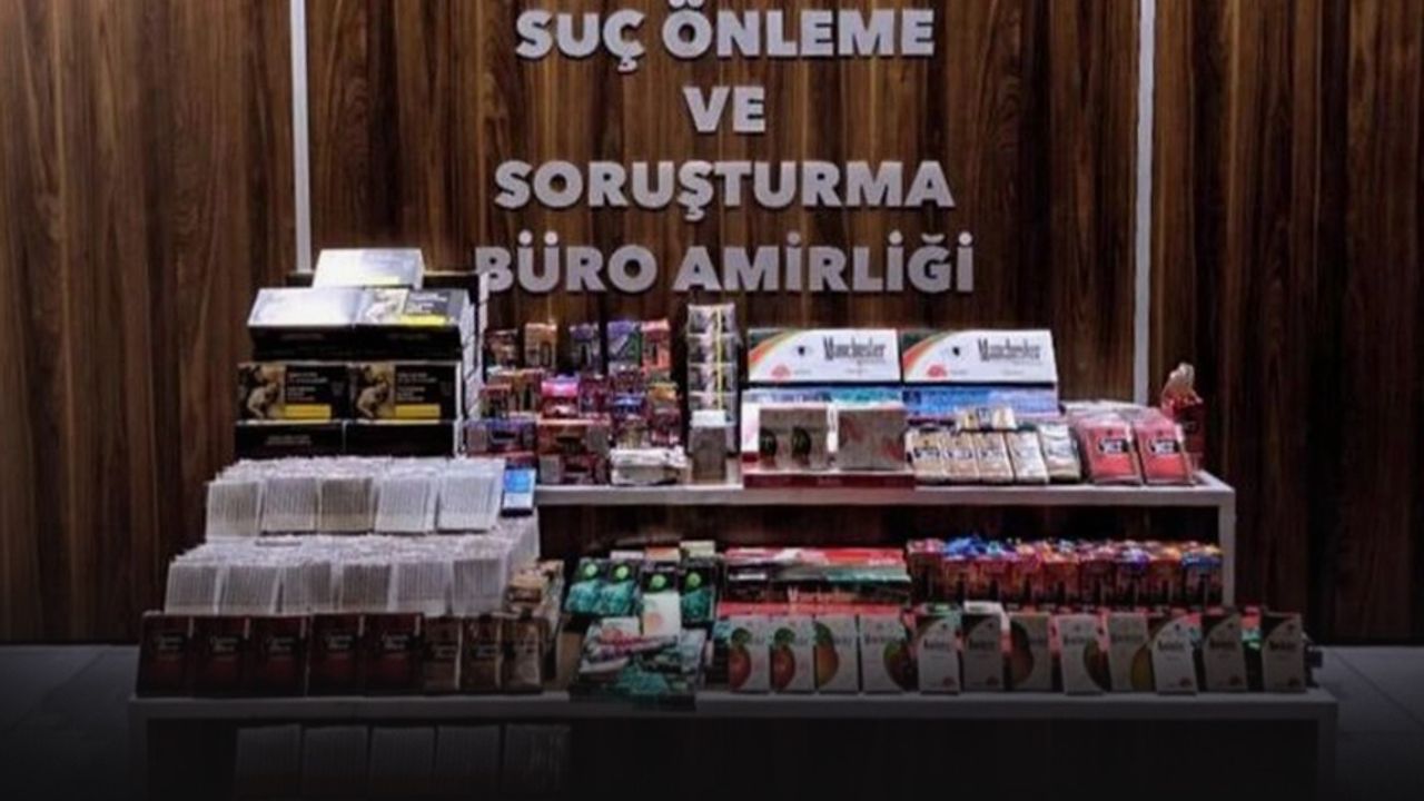 Adreslerdeki aramada 500 farklı markalarda kaçak sigara, 346 dolu sigara paketi, 74 elektronik sigara, 582 doldurulmuş tek dal sigara, 51 puro ve 36 makaron ele geçirildi.