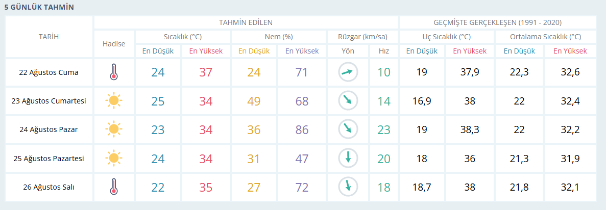İşte İzmir için 5 günlük hava durumu tahmini raporu;