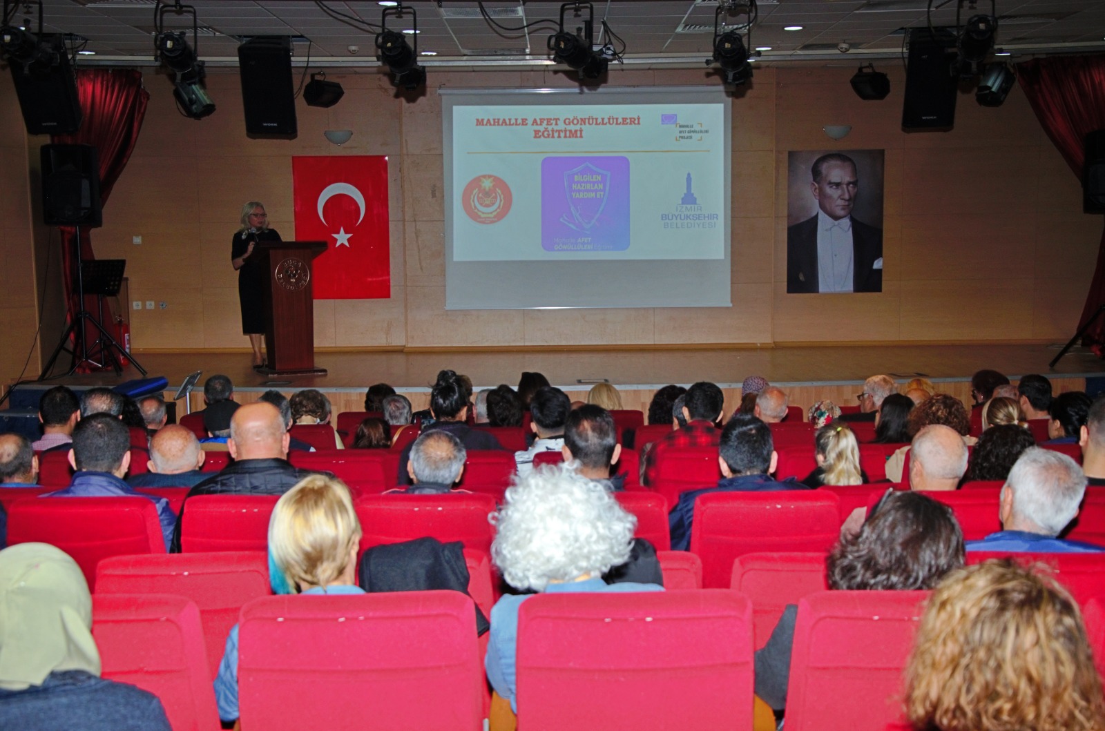 İzmir Büyükşehir Belediyesi, birinci derecede deprem kuşağında yer alan kenti afetlere dirençli hale getirmek için çalışmalarını sürdürüyor. Büyükşehir Belediyesi, bir yandan deprem araştırmaları ve risk azaltma çalışmalarını sürdürürken diğer taraftan ise yurttaşların afetlere karşı bilinçlenmesini sağlıyor. Bu kapsamda Mahalle Afet Gönüllüleri projesini hayata geçiren Büyükşehir, ilk eğitimi Buca Yarı Olimpik Yüzme Havuzu Konferans Salonu’nda verdi. Gönüllülere ilk yardım konusunda da bilgi verildi.