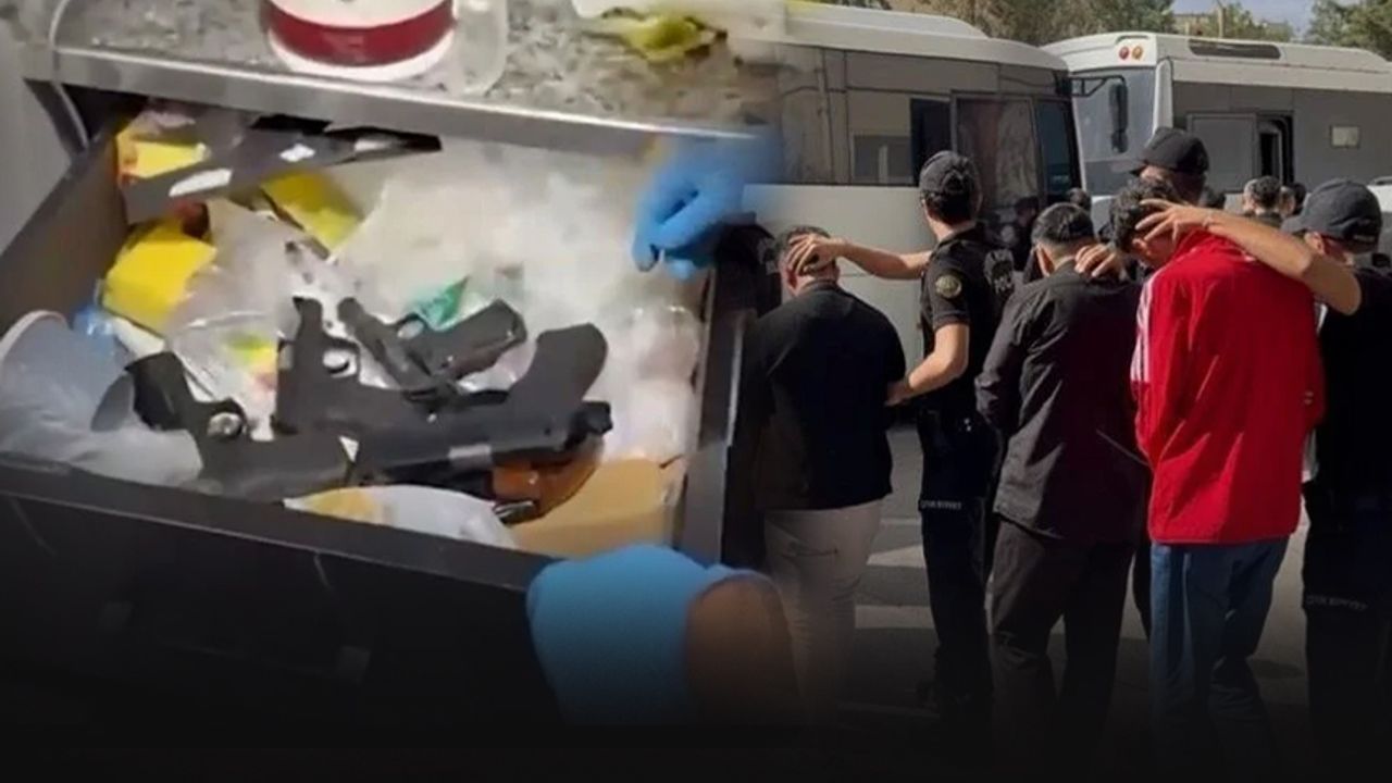 Baskınlarda çok sayıda silah, şarjör, fişek ve silah üretiminde kullanılan malzeme ele geçirildi.