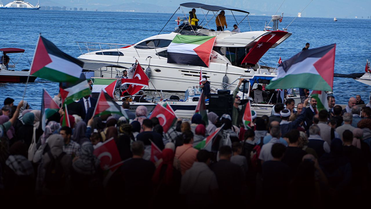 İzmir'de Gazze'ye insani yardım ulaştırmak amacıyla yola çıkan Küresel Sumud Filosu'nu desteklemek için 'Kararlıyız, Sumud'un Yanındayız' etkinliği düzenlendi. 7 noktadan denize açılan tekneler Cumhuriyet Meydanı'nın önündeki Pasaport İskelesi'nde bir araya geldi. Bostanlı, Güzelbahçe 2, Güzelbahçe Yalı, Güzelbahçe 1, Sahilevleri, İnciraltı ve Mavişehir balıkçı barınaklarından sabah saatlerinde denize açılan tekneleri, meydanda toplanan vatandaşlar karşıladı. Sık sık tekbir getiren, aralarında çocukların da bulunduğu topluluk 'Nehirden denize özgür Filistin' sloganları attı. Etkinlikte Gazze ve Filistin'e destek mesajları verildi. Filistin'e Destek Platformu adına konuşan İzmir Sivil Toplum Kuruluşları (İSTOK) Dönem Başkanı Gökhan Temur, küresel Sumud Filosu'nun bir vicdan hareketi olduğunu dile getirdi. Gemilerde silah ve tehdit bulunmadığını söyleyen Temur, "O gemilerde mazlum çocukların sütü, annelerin ekmeği, babaların umudu, kardeşlerimizin vicdanı vardır. Zalim İsrail uluslararası hukuk ve insanlık değerlerini hiçe sayarak sivil inisiyatifi katletti. Bu saldırı yalnızca bir deniz haydutluğu değil insanlığın merhametine ve onuruna vurulmuş bir darbedir. Açlığa, kuşatmaya ve ölüme direnen bir halkın sesini susturmaya yönelik alçakça bir girişimdir. Hepimizin yüreğinde bir daha kapanmayacak derin bir yara açmıştır" dedi. Adaletin, insanlığın ve umudun rotasından hiçbir zaman sapmayacaklarını belirten Temur, Gazze kara sularına fiilen ulaşıldığını hatırlatıp, son gemide İsrail'in tutsağı durumunda 2'si İzmir'den 14 vatandaşın bulunduğunu ifade etti.