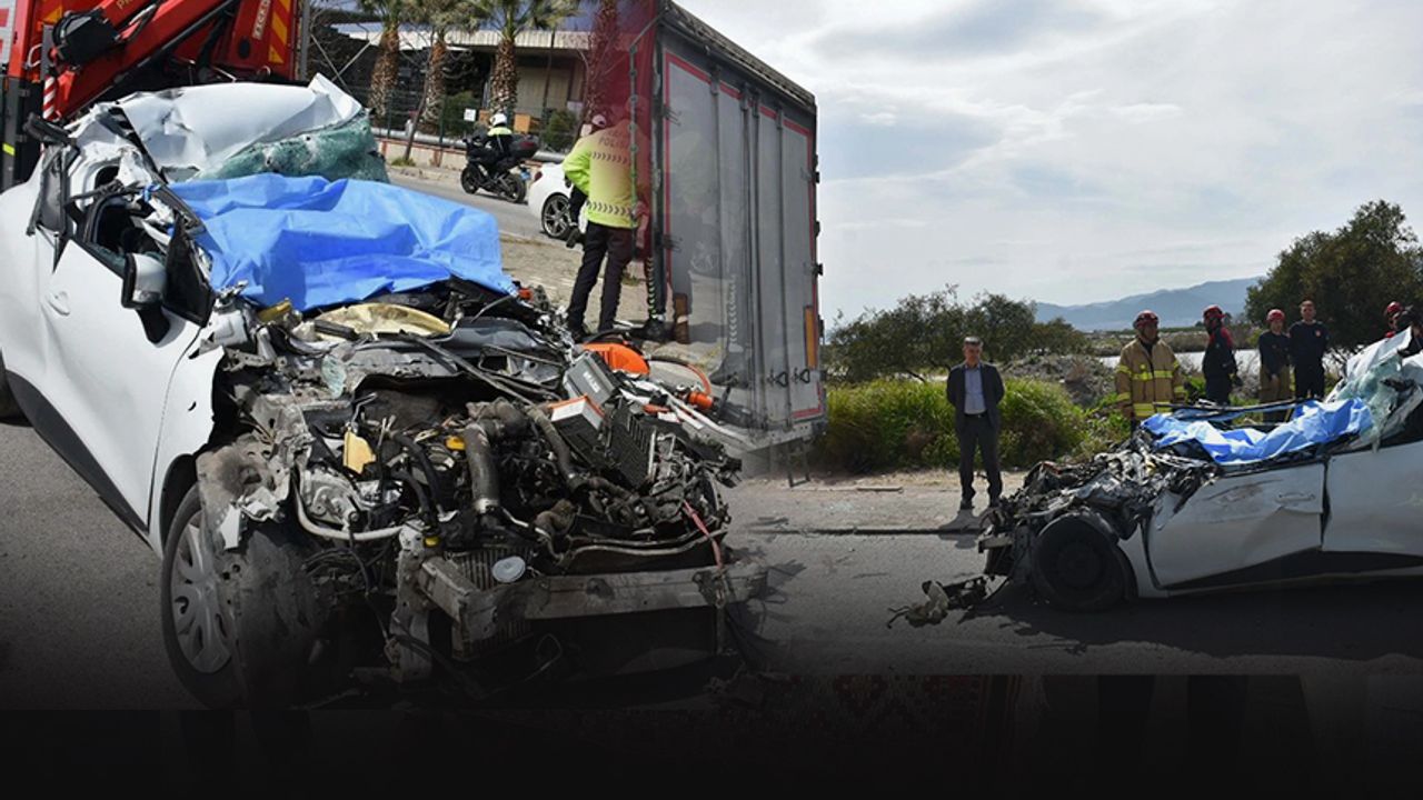 Kaza, saat 12.00 sıralarında, Atatürk OSB Mahallesi 10006/1 Sokak'ta meydana geldi. Ahmet Kama idaresindeki 35 AOB 563 plakalı otomobil, Ali Eren (59) yönetimindeki 58 AS 667 plakalı TIR'a arkadan çarptı. Çarpmanın etkisiyle otomobil hurdaya döndü. Kazayı görenlerin ihbarıyla kaza yerine sağlık, polis ve itfaiye ekipleri sevk edildi.