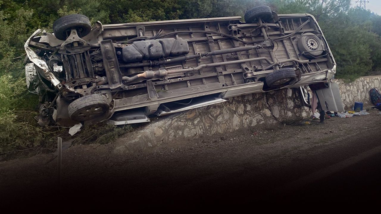 Aydın'ın Kuşadası ilçesinden Alman turistleri İzmir'deki Adnan Menderes Havalimanı'na götürmek için yola çıkan G.Ç. (53) yönetimindeki 09 AGN 162 plakalı minibüs, Menderes-Gümüldür kara yolunda devrildi.