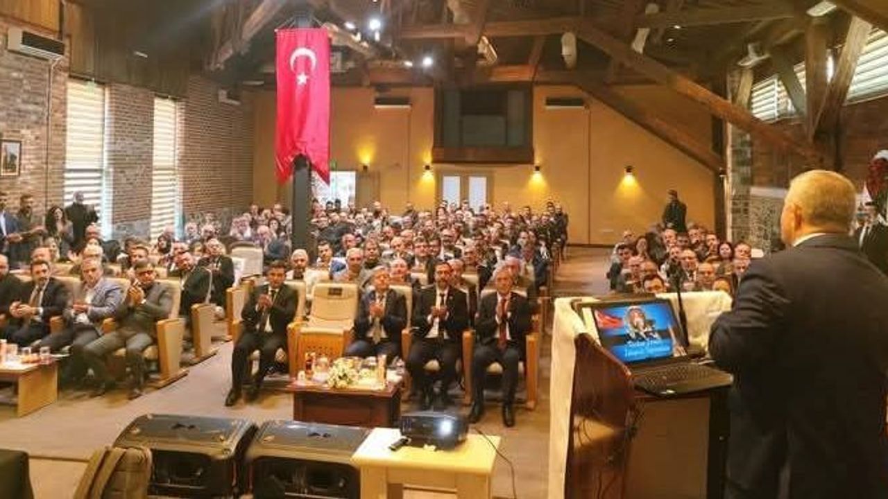 İzmir’in otuz ilçesinde toplantıya katılan ülkücü memurların buluştuğu toplantıda hitap eden Genel Başkan Ebubekir Korkmaz, “Milliyetçi-Ülkücü memurların görevi, hedefi ve mücadelesi bellidir. Devletimiz adına insanımıza hizmet etmek şiarımız, milletimiz namına da devletimize sahip çıkmak vazifemizdir. Bu bakımdan Ülkücü Devlet memurları Türk Devletinin Asil Evlatları’dır. Devletimizin güvencesi, milletimizin dayanağıdır. Tarihin derinliklerinden ışık alır, Atatürk ilkelerine bağlı, Türkeş ideallerini yaşatan, büyük devlet ve fikir adamı Lider Devlet Bahçeli Beyefendi’nin izinde Türk Yüzyılı hedeflerine yürüyenlerdir. Bu yolda hiç bir fedakârlıktan da kaçınmazlar. Bugün İzmir’de gerçekleştirdiğimiz toplantımız birçok önemli adıma vesile olacaktır. Unutmayınız düşmanımız bellidir. Dün ne yaptılarsa bugün de aynı fitne yolunu gütmektedirler. Geçmişte Türkeş’e yapılan ihanet, bugün Lider Devlet Bahçeli’ye yapılmak istenmiş fakat hak ettiklerini bulmuşlardır. Türk Milliyetçileri Liderleri etrafında kenetlenmişlerdir. Ülkü bellidir. O da Lider Ülke Türkiye ve Türk Yüzyılıdır.” ifadelerini kullandı.