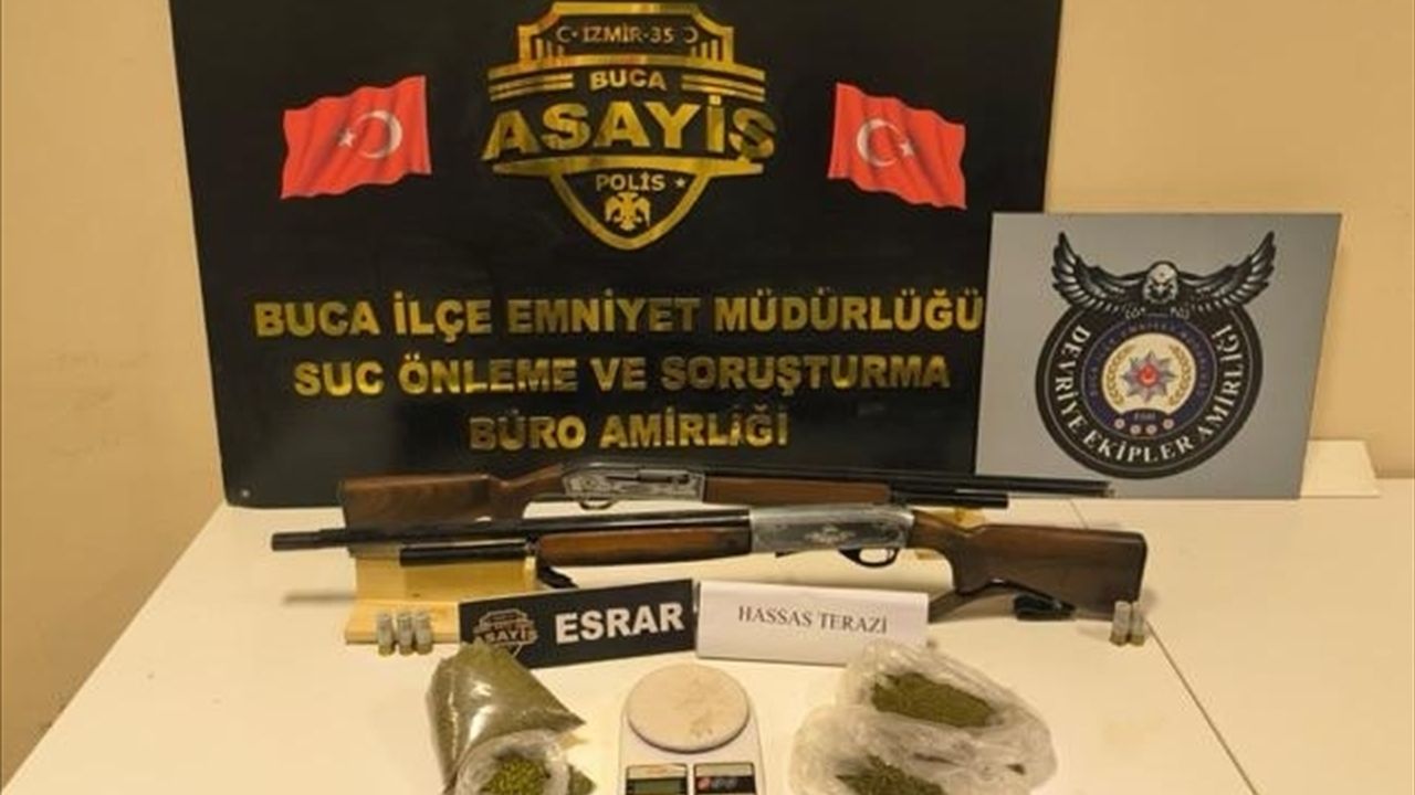 Buca İlçe Emniyet Müdürlüğü ekipleri uyuşturucu ticareti yaptığı iddia edilen C.Ç'nin Gaziemir ilçesindeki evine baskın düzenledi.