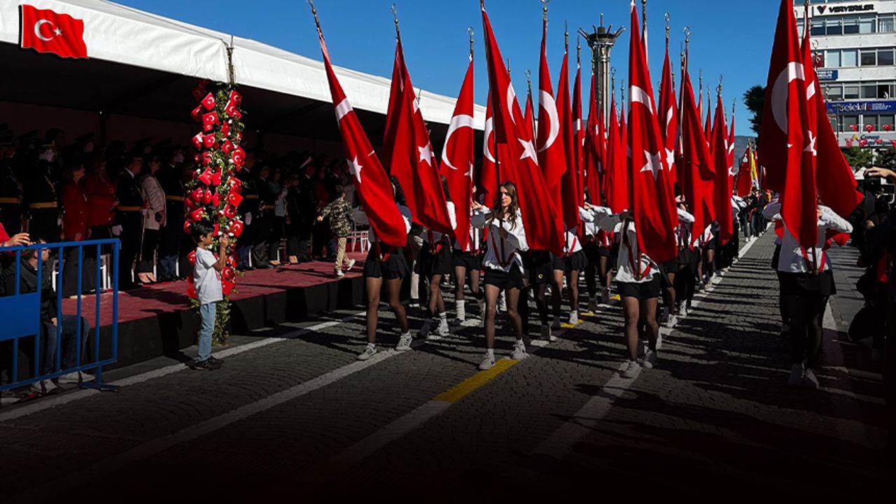 GÜNDEME BAKIŞ - 29 Ekim Cumhuriyet’in ilan edilişinin 102.yılı İzmir’de Cumhuriyet Meydanı’ndaki törende büyük bir coşkuyla kutlandı. Cumhurbaşkanı Recep Tayyip Erdoğan yayınladığı mesajda “Cumhuriyete giden yolu açan Gazi Meclisimizin tüm mensuplarını, bugün bir kez daha şükranla anıyorum” derken İzmir Valisi Süleyman Elban, “Milletimiz kıyamete kadar bahtiyar devletimiz payidar olsun” dedi. Tören halk oyunlarıyla ve İzmirlilerin katılımıyla renkli görüntülere sahne oldu.