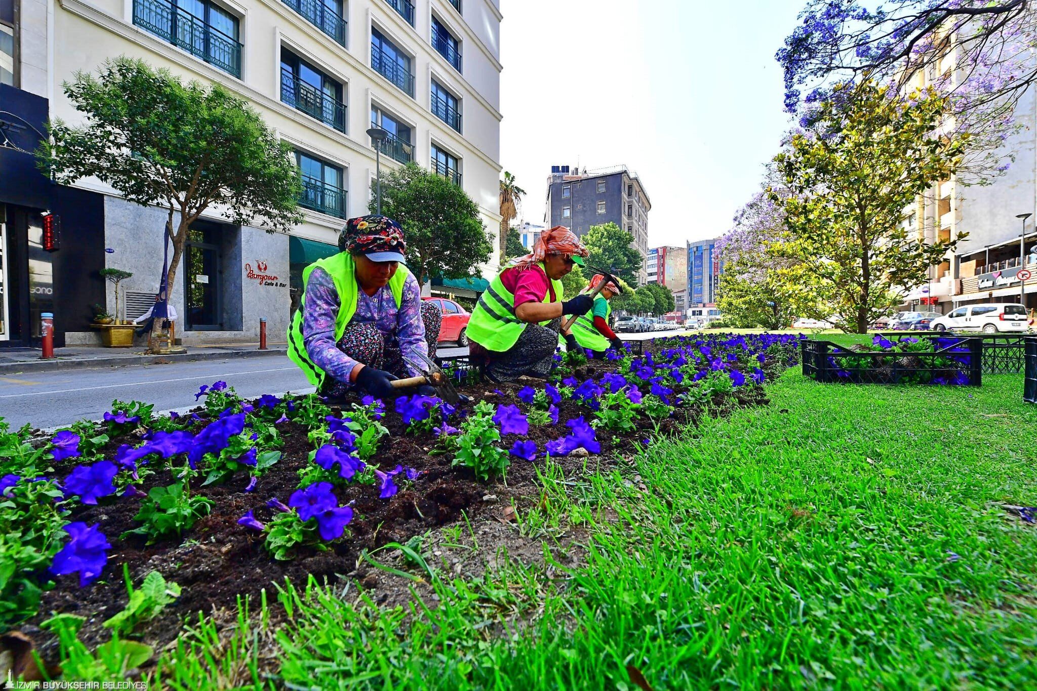 İzmir Büyükşehir Belediyesi kentin cadde ve meydanlarını çiçeklerle donattı. İzmir Büyükşehir Belediyesi, baharın gelmesi ile birlilklerle donattı. ini tercih ettiklerini belirten yoruz. Bu yıl kent geneliPark ve Bahçeler Dairesi Başkanlığı şehrin yeşil alanlarını mevsime uygun çiçekler dikerek yeniden düzenledi. İzmir'in cadde, bulvar, park ve bahçeleri ile orta refüjleri petunya, kadife, godetya gibi çiçek, yer örtücü, sarılıcı ve soğanlı bitki türleriyle adeta bir tablo gibi süslendi. Rengârenk kadife çiçekleriyle bezeli Kordon, fotoğraf tutkunları için birbirinden canlı kareler sunuyor. Yerel üreticiyi desteklemek için kooperatiflerden satın alınan çiçekler kadınlar tarafından dikiliyor.